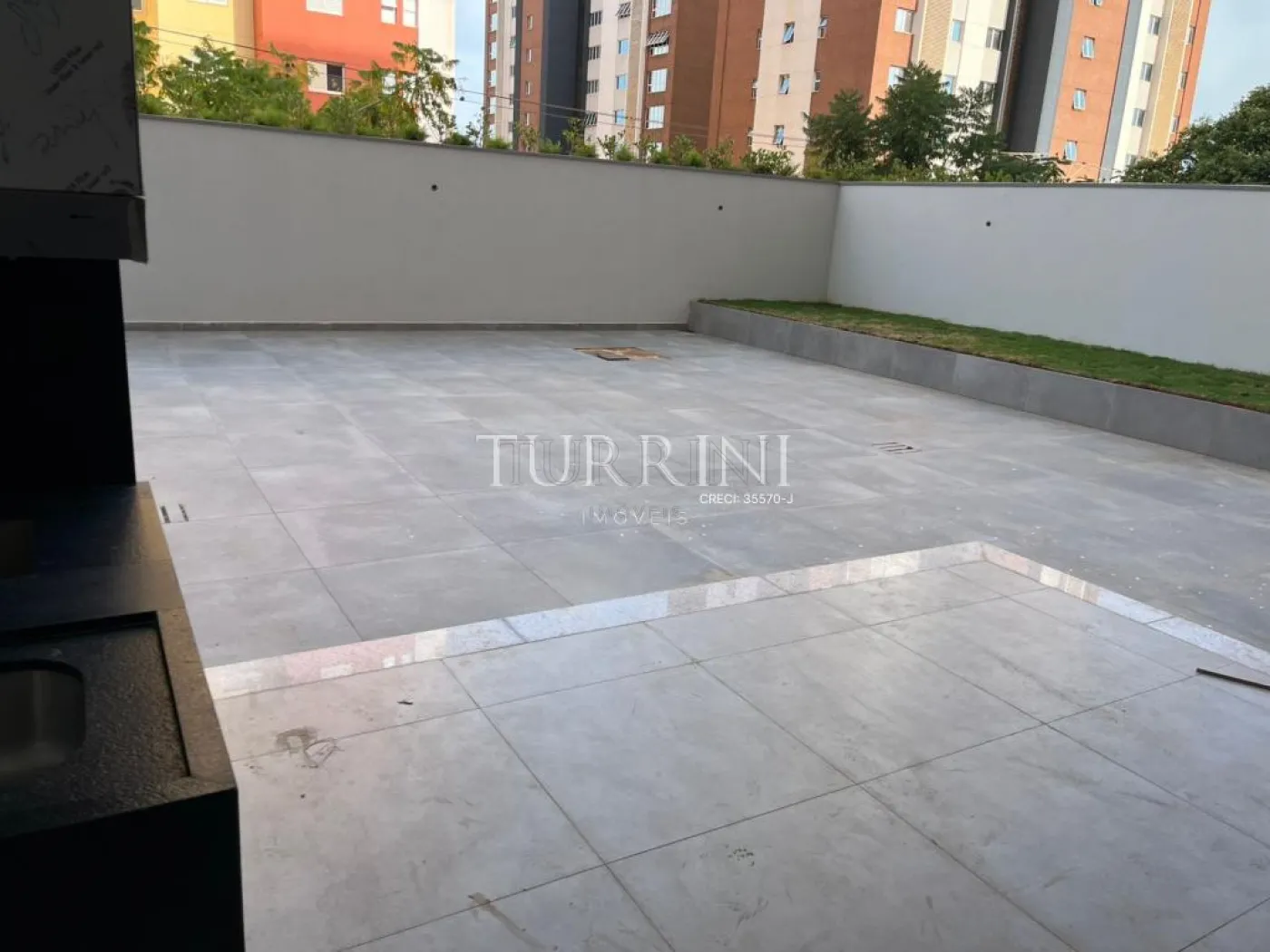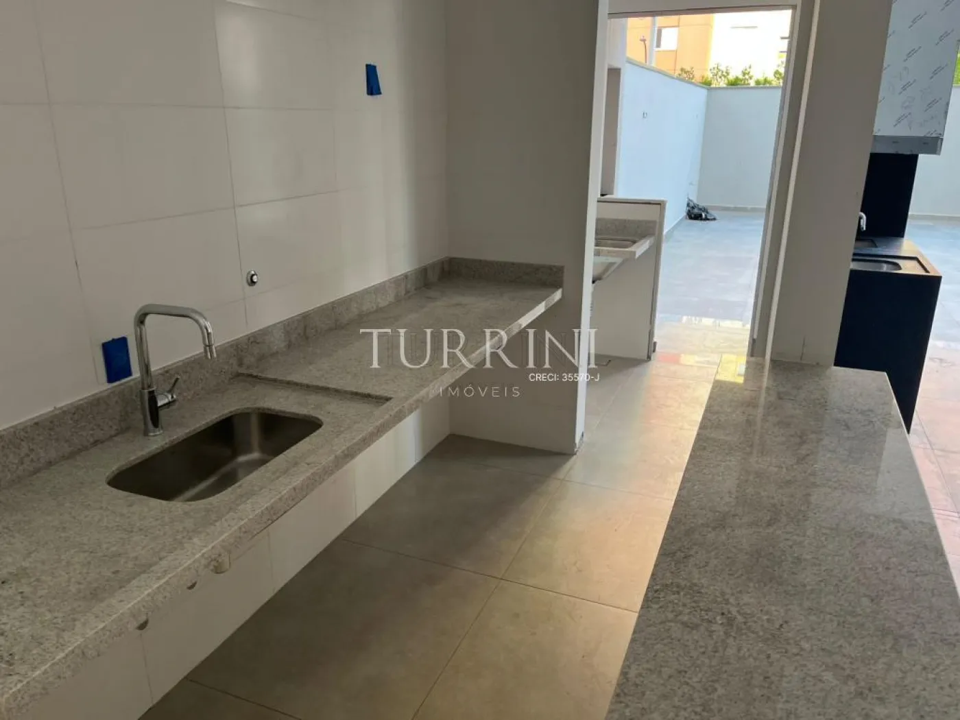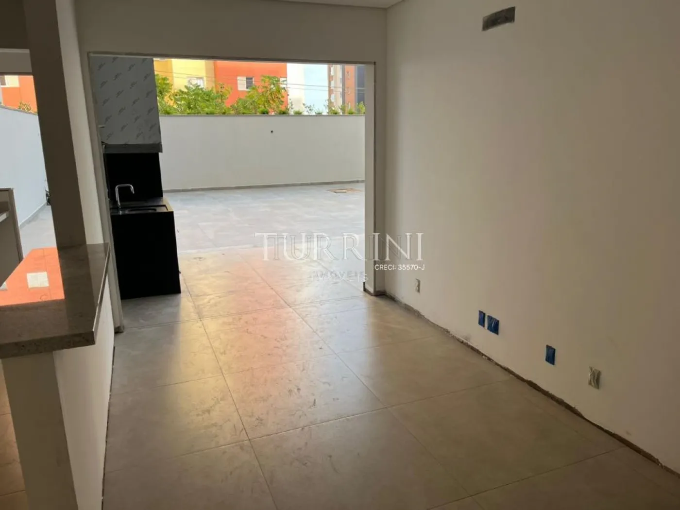Varanda gourmet com churrasqueira, pia e ponto para gás