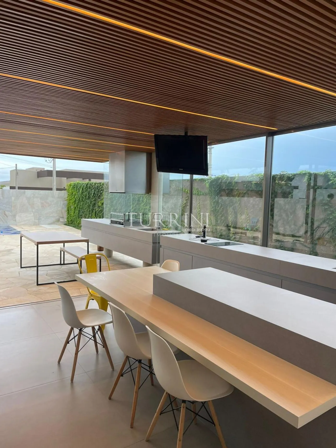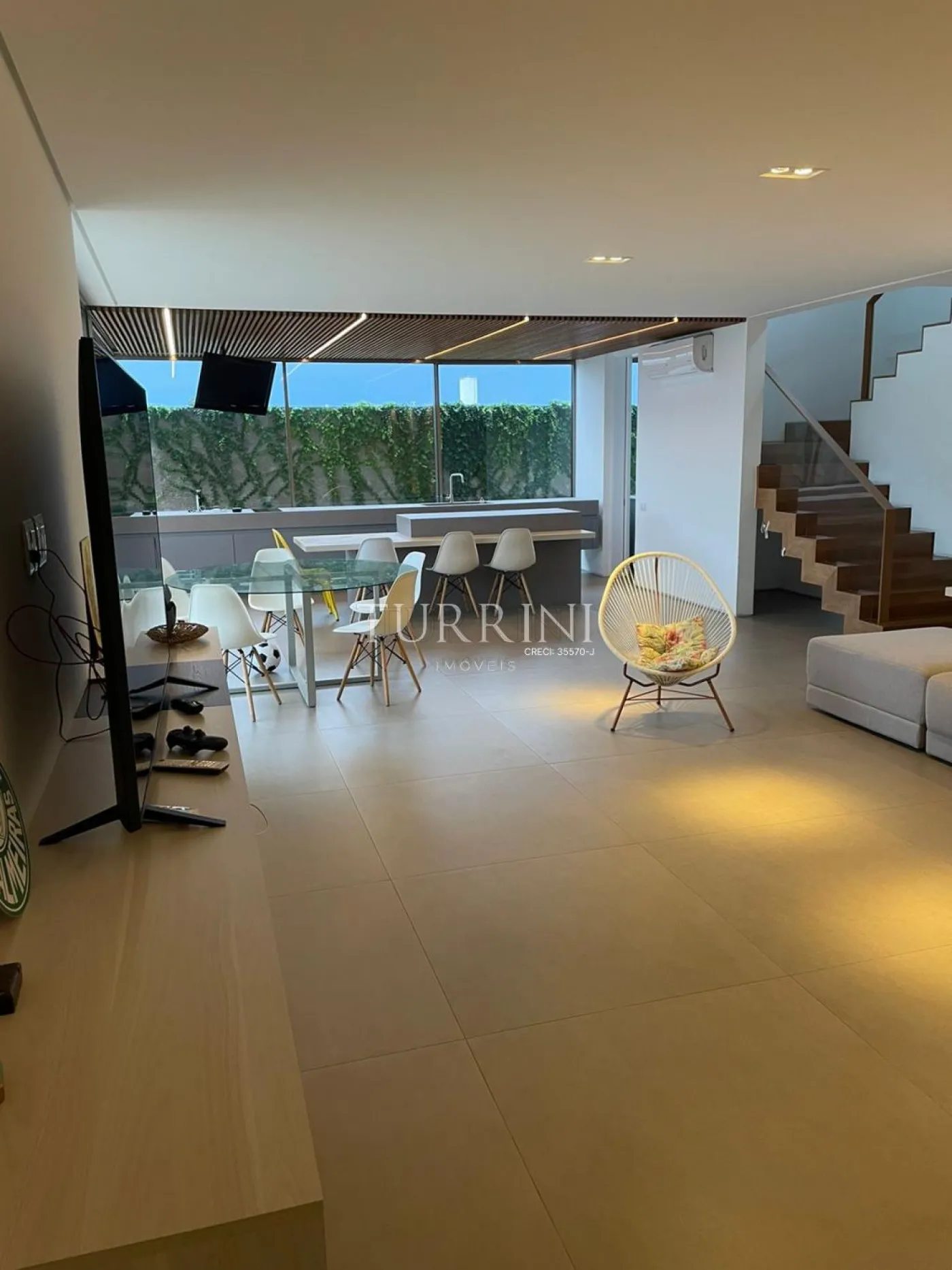 3 Suítes com pisos de madeira maciça peroba mica, ar condicionado quente/frio, closet na suíte master, esquadrias automatizadas e black out, chuveiros deca aquaplus, aquecimento na piscina e boiler de 500l, escritório com ar condicionado, sala tv com área gourmet integrada (cooktop por indução, 2 ar condicionado quente/frio), churrasqueira, lavabo, banheiro piscina, lavanderia, móveis planejados (quartos, banheiros, cozinha, sala, lavanderia, área gourmet), cozinha planejada com cooktop 5 bocas, forno e micro-ondas embutidos, garagem para três carros com portão automatizado, piso de baixo porcelanato portinari, banheiros com revestimentos portinari com bancadas em quartzo branco (dos 5 banheiros, 3 com Cuba esculpida), bancadas da cozinha, varanda gourmet e churrasqueira em pedra ultracompac (varanda 1 e 2 com pia esculpida), esquadrias na linha minimalista na cor inox, área da piscina e revestimento das parede interna/externa em pedras naturais São Tomé branca, muros externo com acabamento Fulget. Garagem para 3 carros.