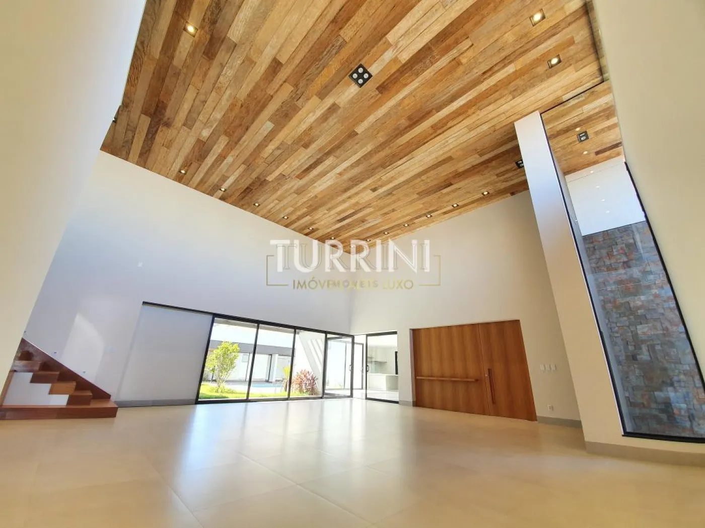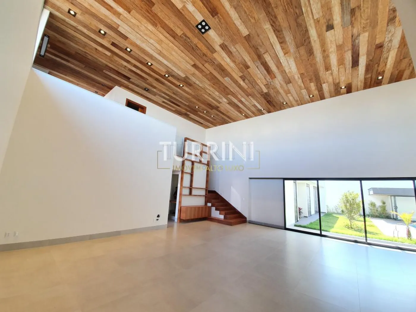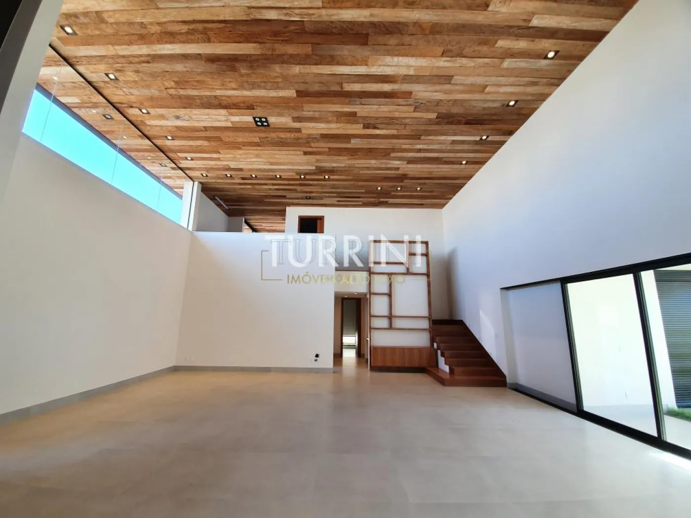 Sala ampla com pé direito de 6,18 metros de altura