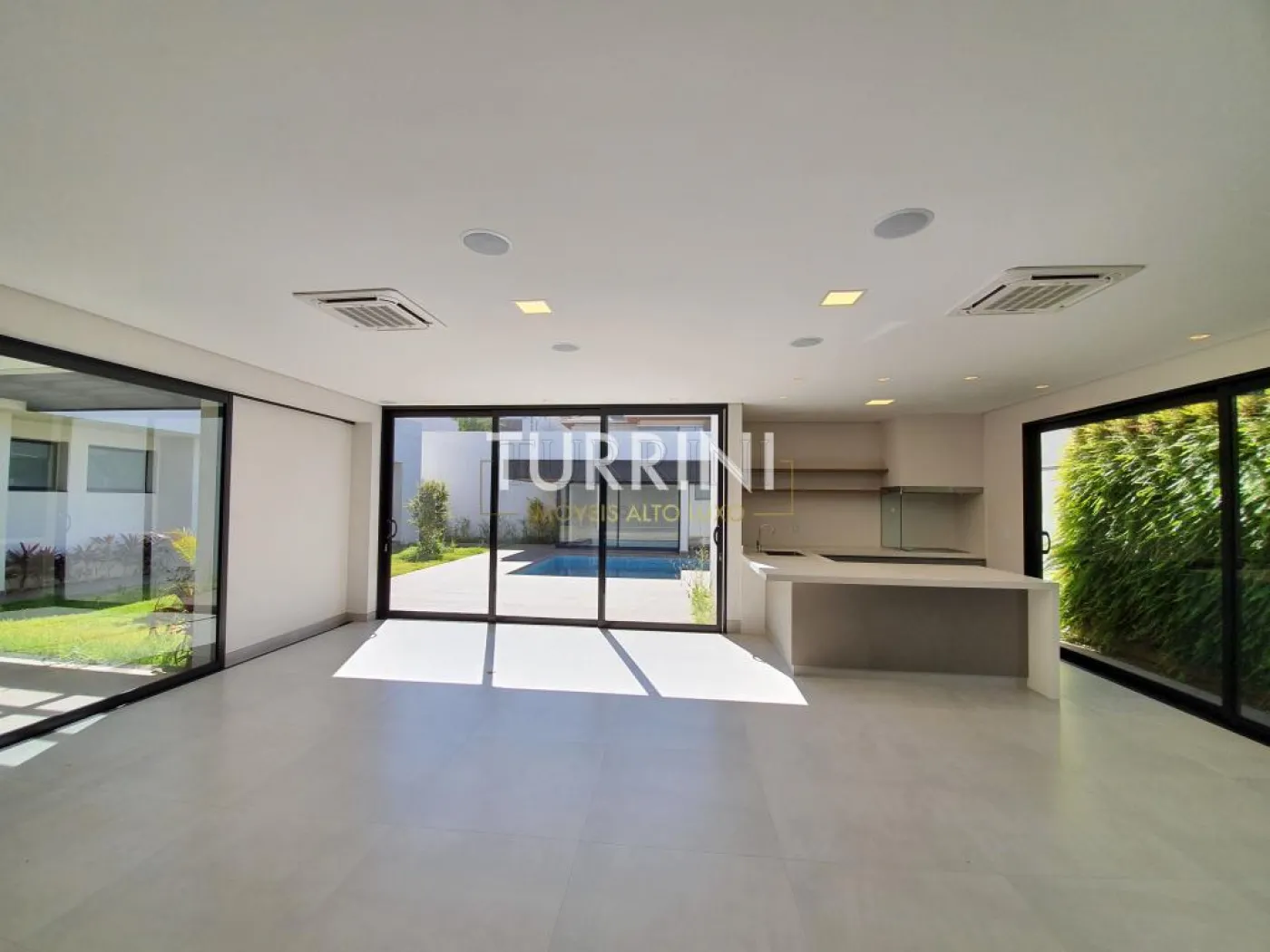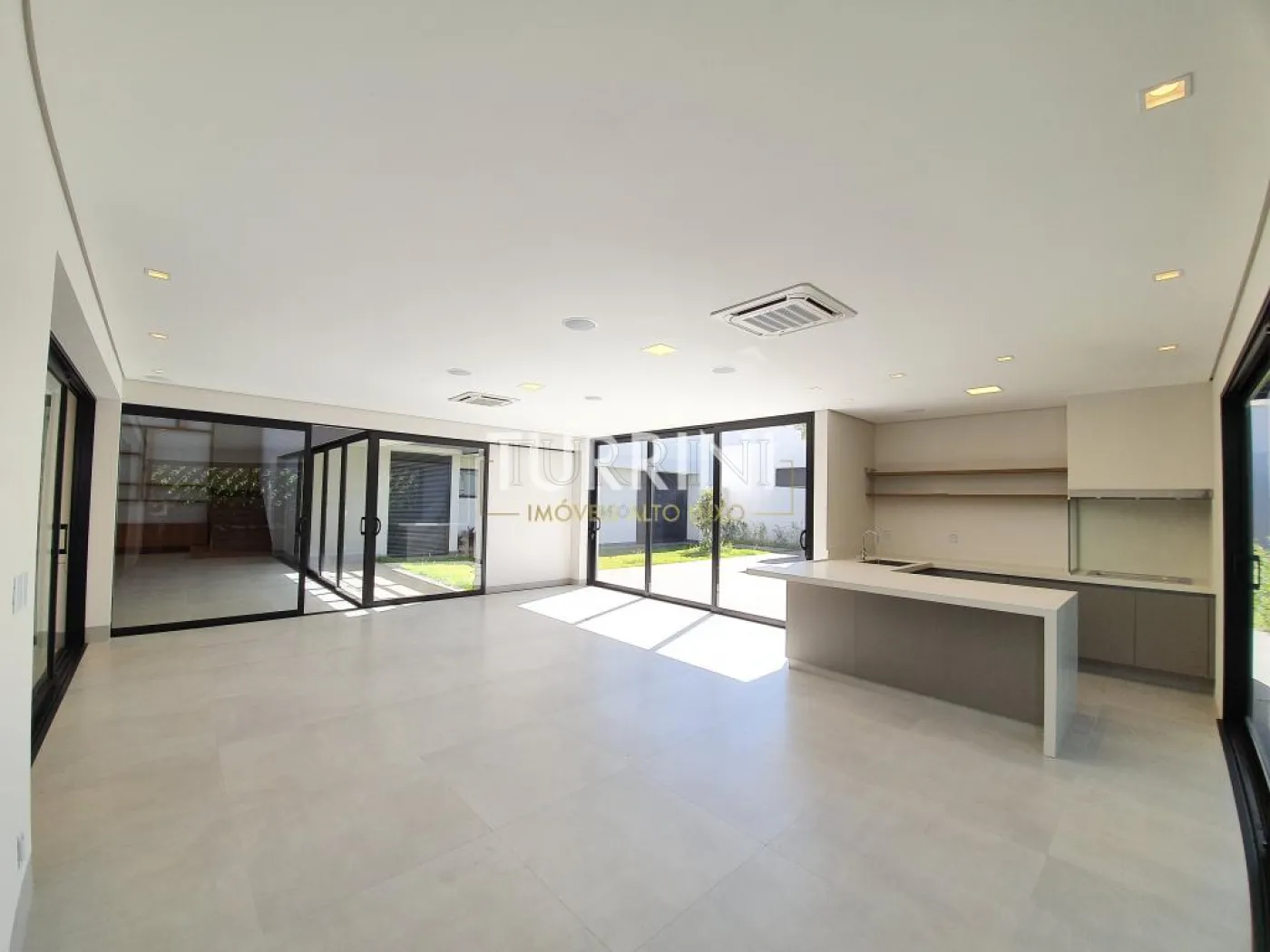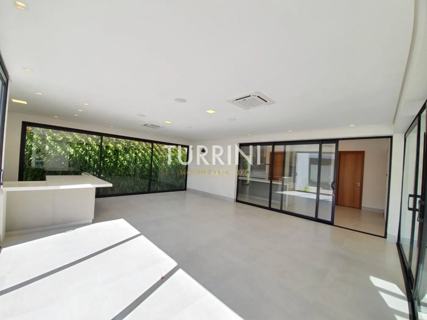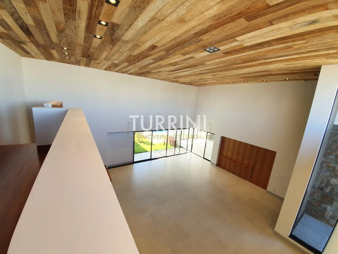 Sala ampla com pé direito de 6,18 metros de altura