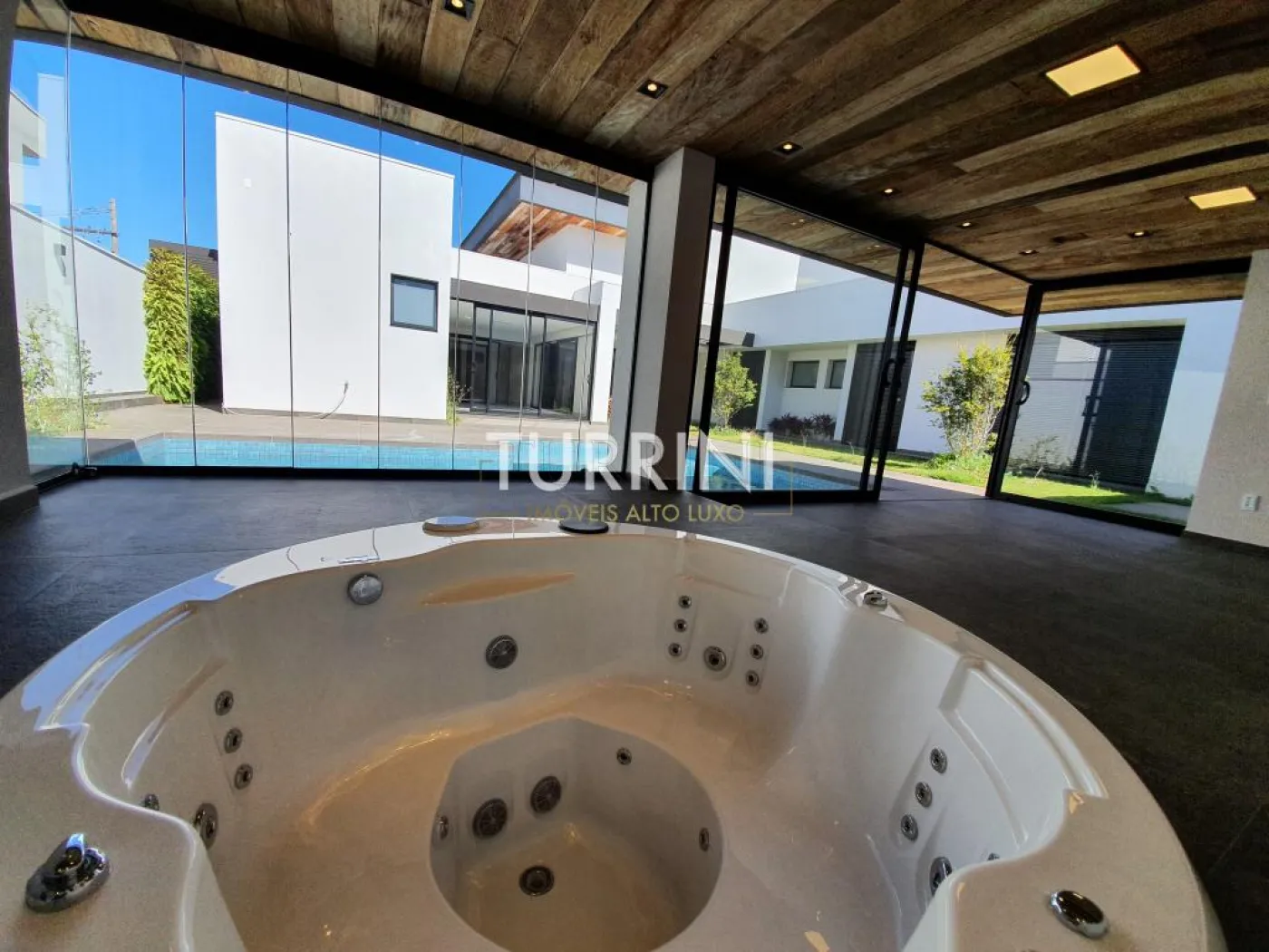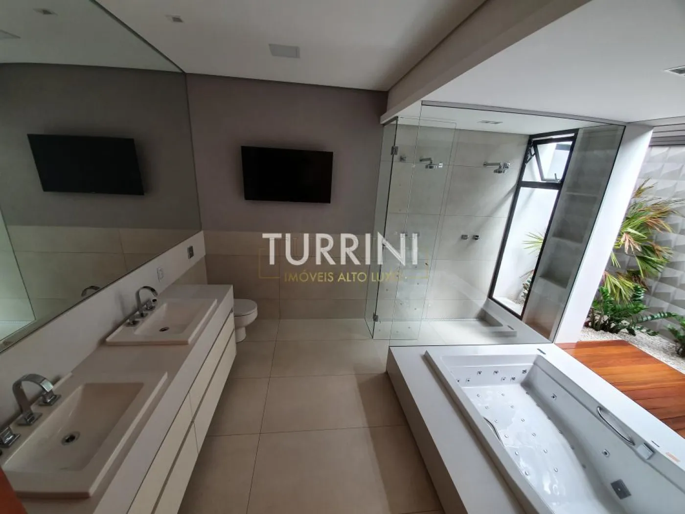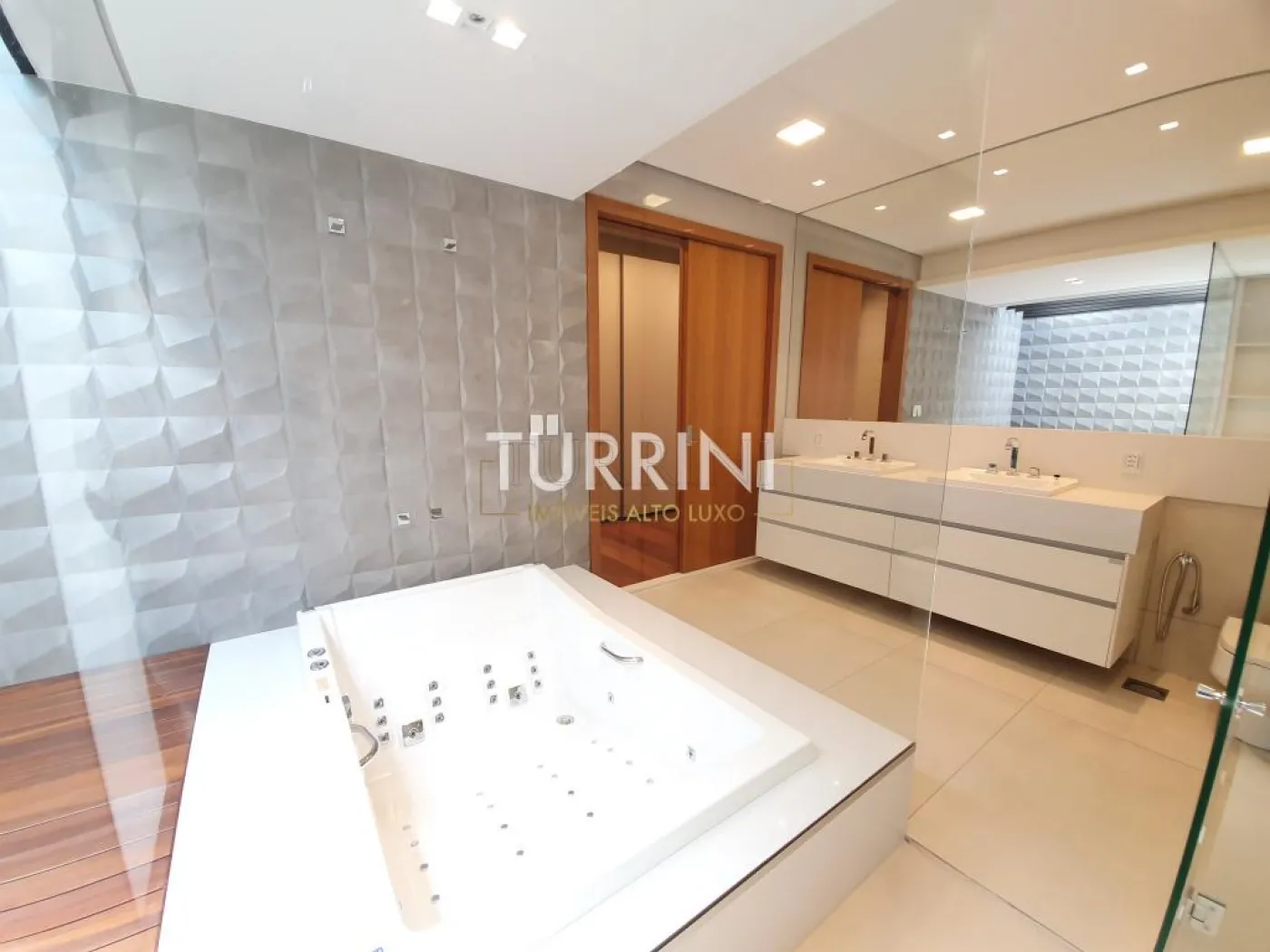 4 suítes com pé direito de 3 metros de altura, suíte master possui uma banheira para duas pessoas da marca ?RIOLAX?.