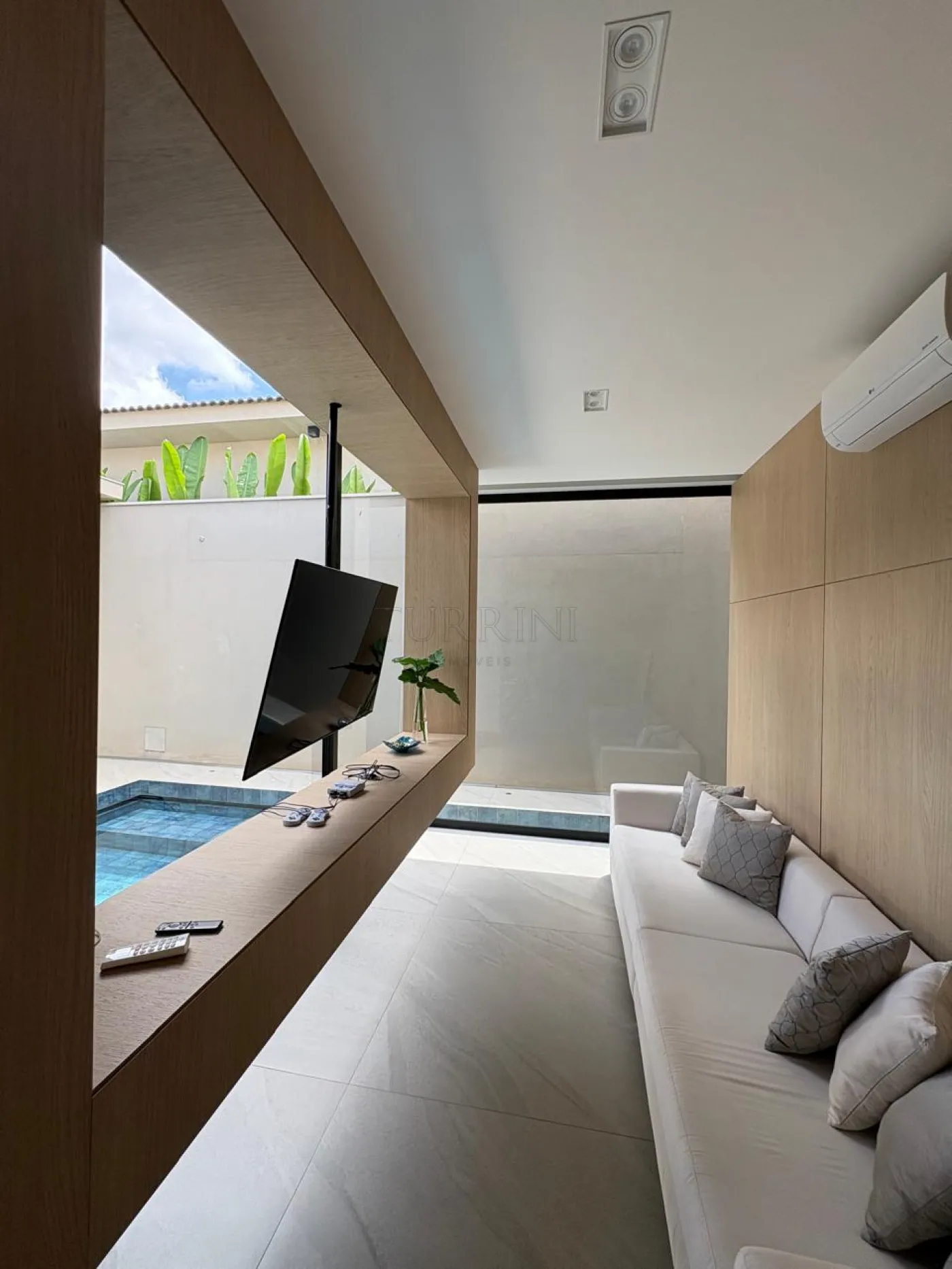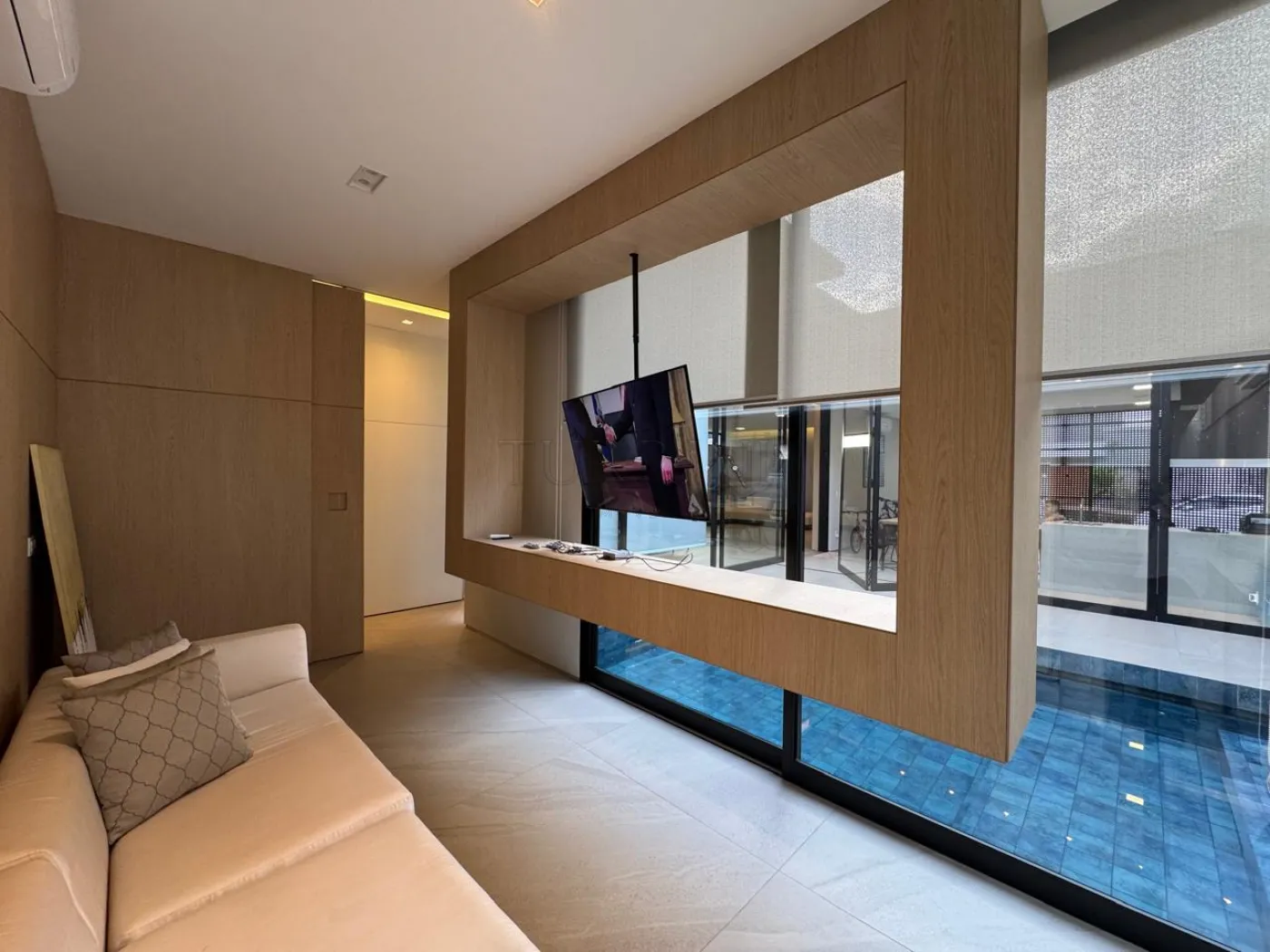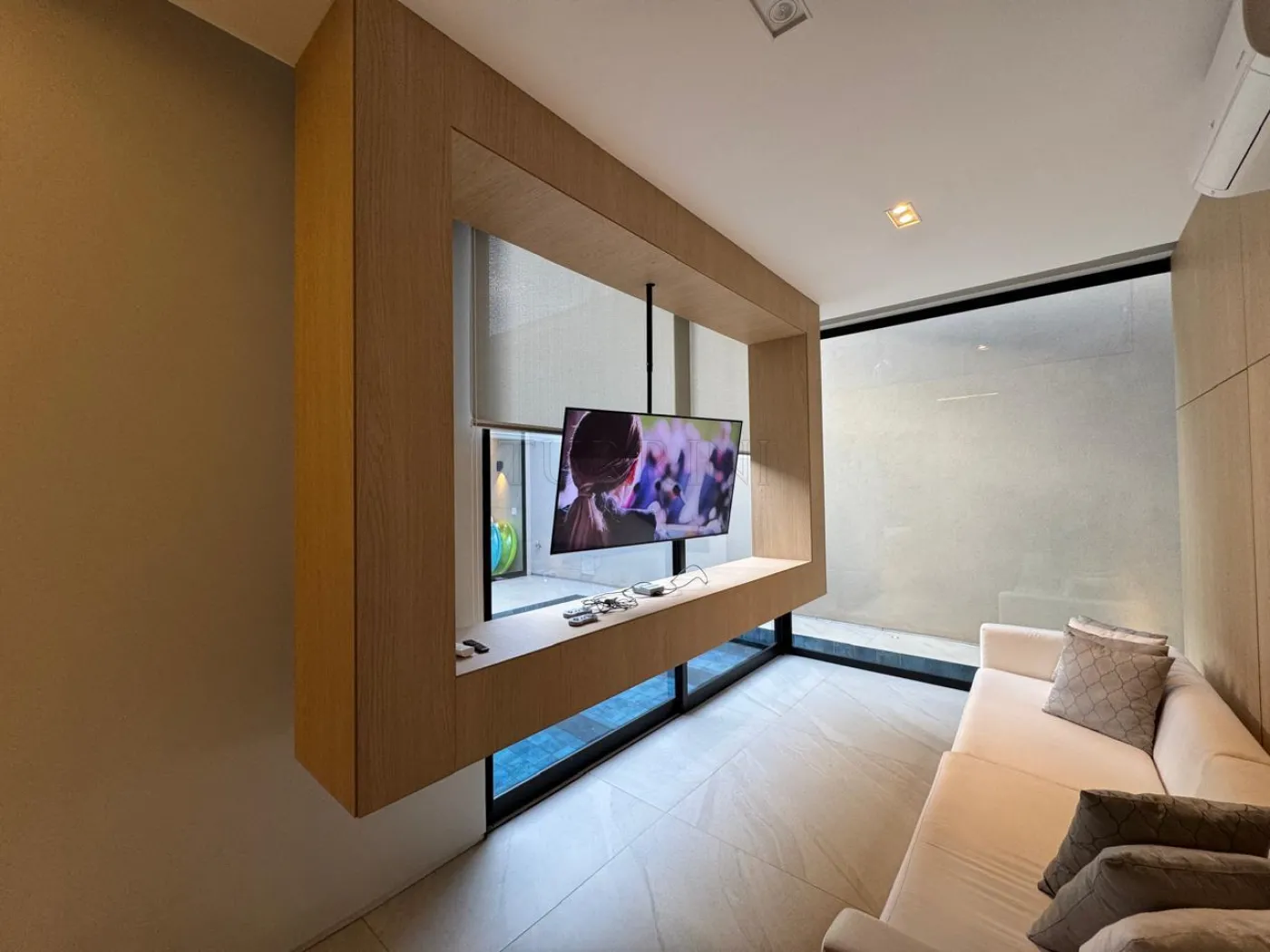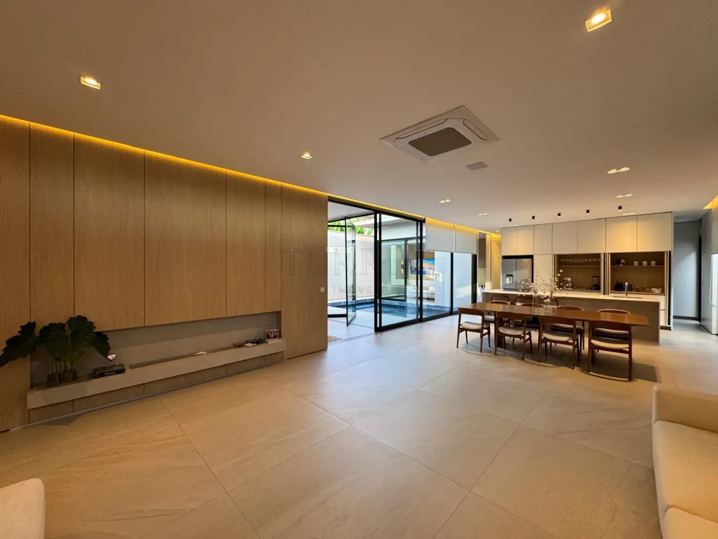 Estar com lareira e som ambiente