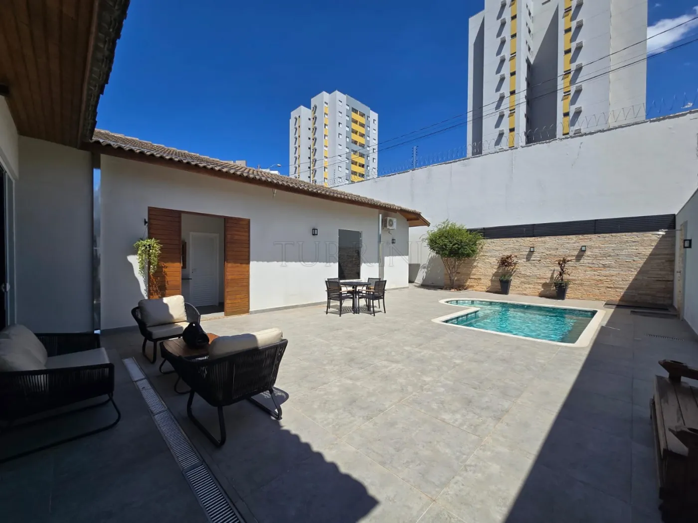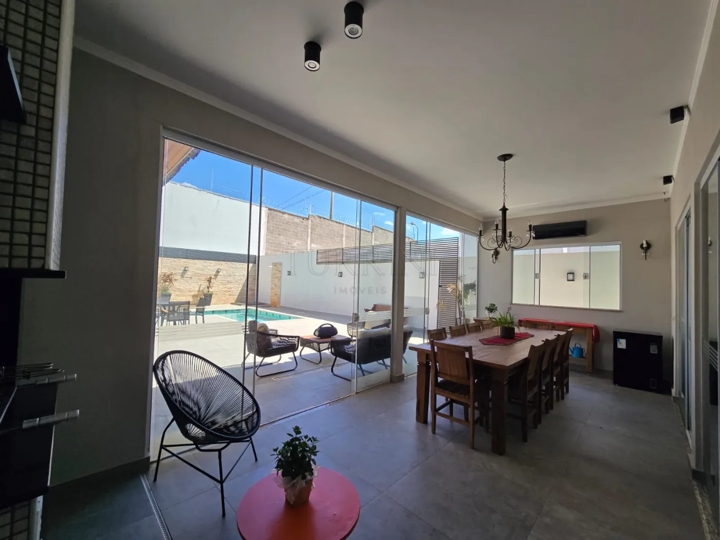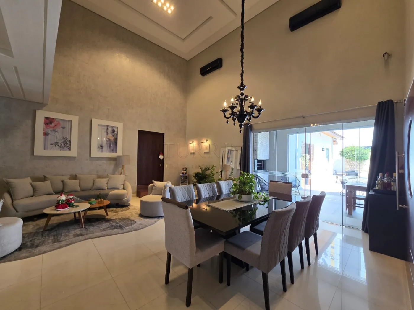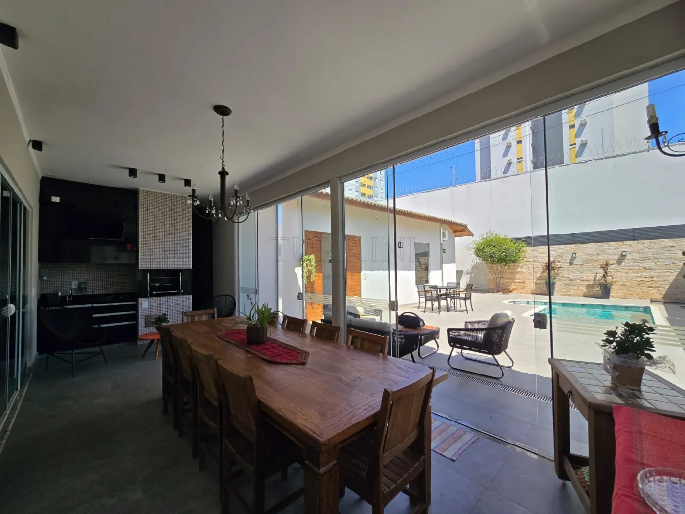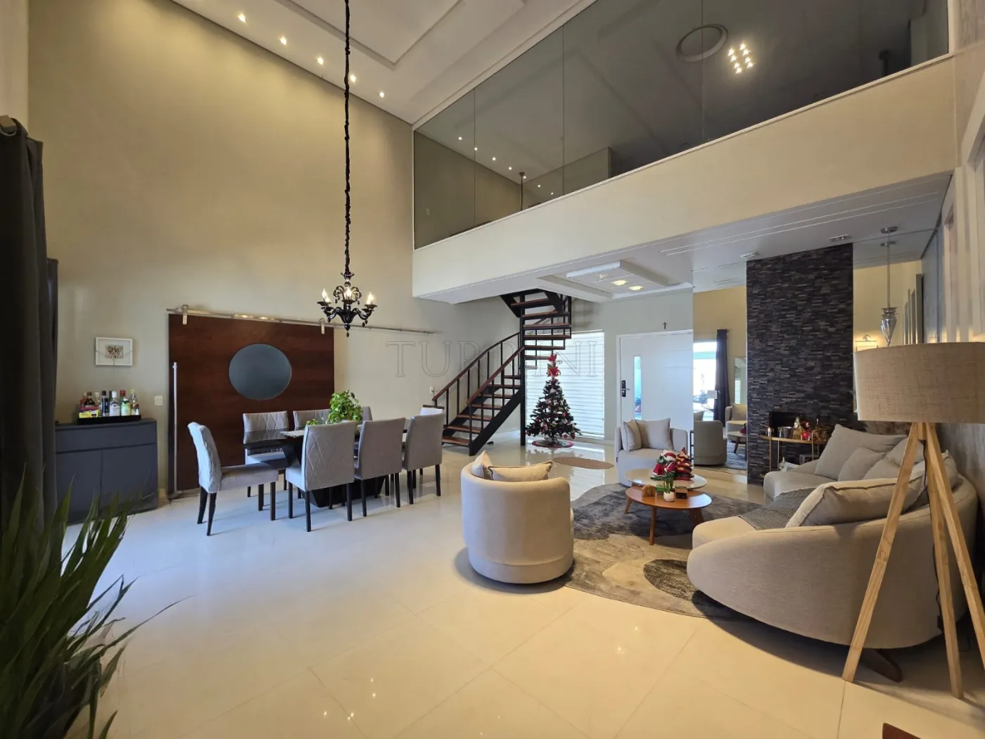 4 suítes, Sala dois ambientes, cozinha completa em armários, mezanino, espaço gourmet, piscina sauna, adega, área de serviço e garagem para dois carros.
