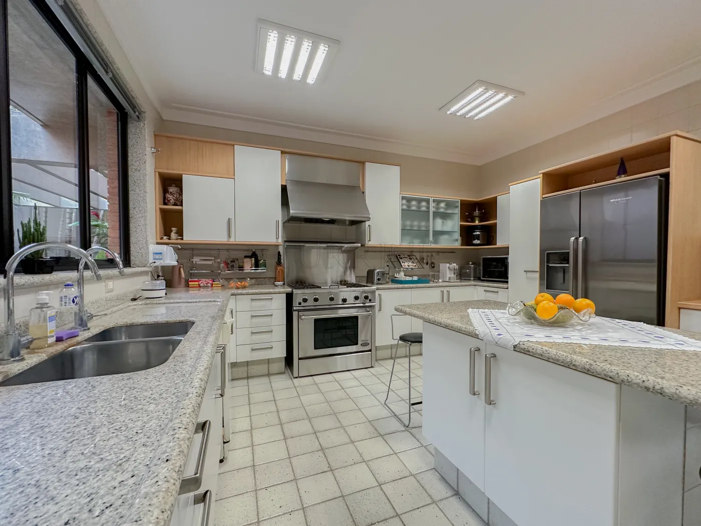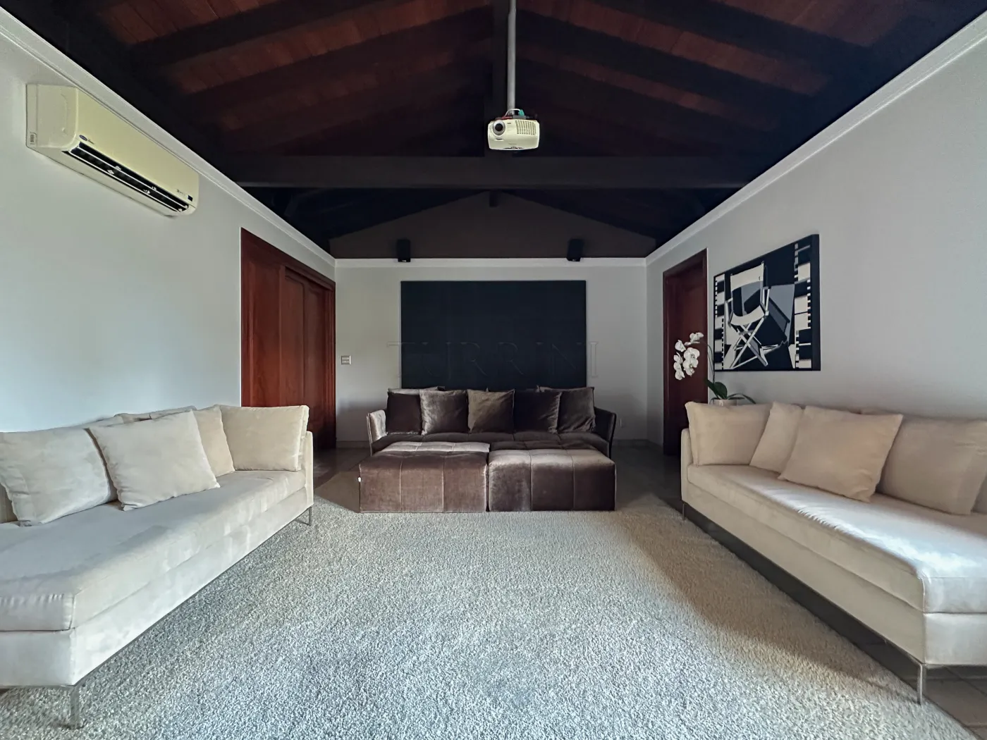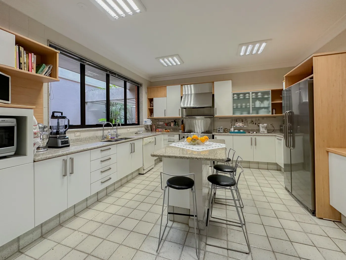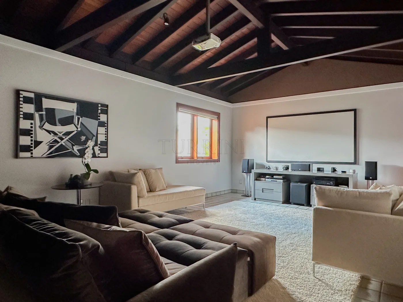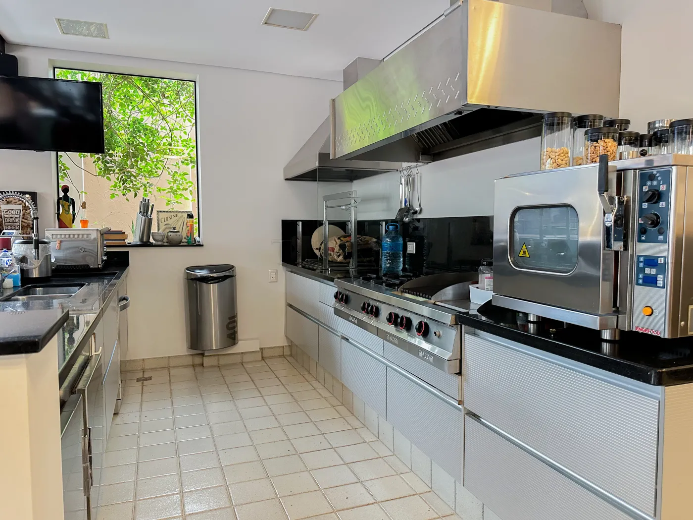 Na lateral da casa estão duas suítes para hóspedes, atendidas por uma copa, com acesso à sala de TV.