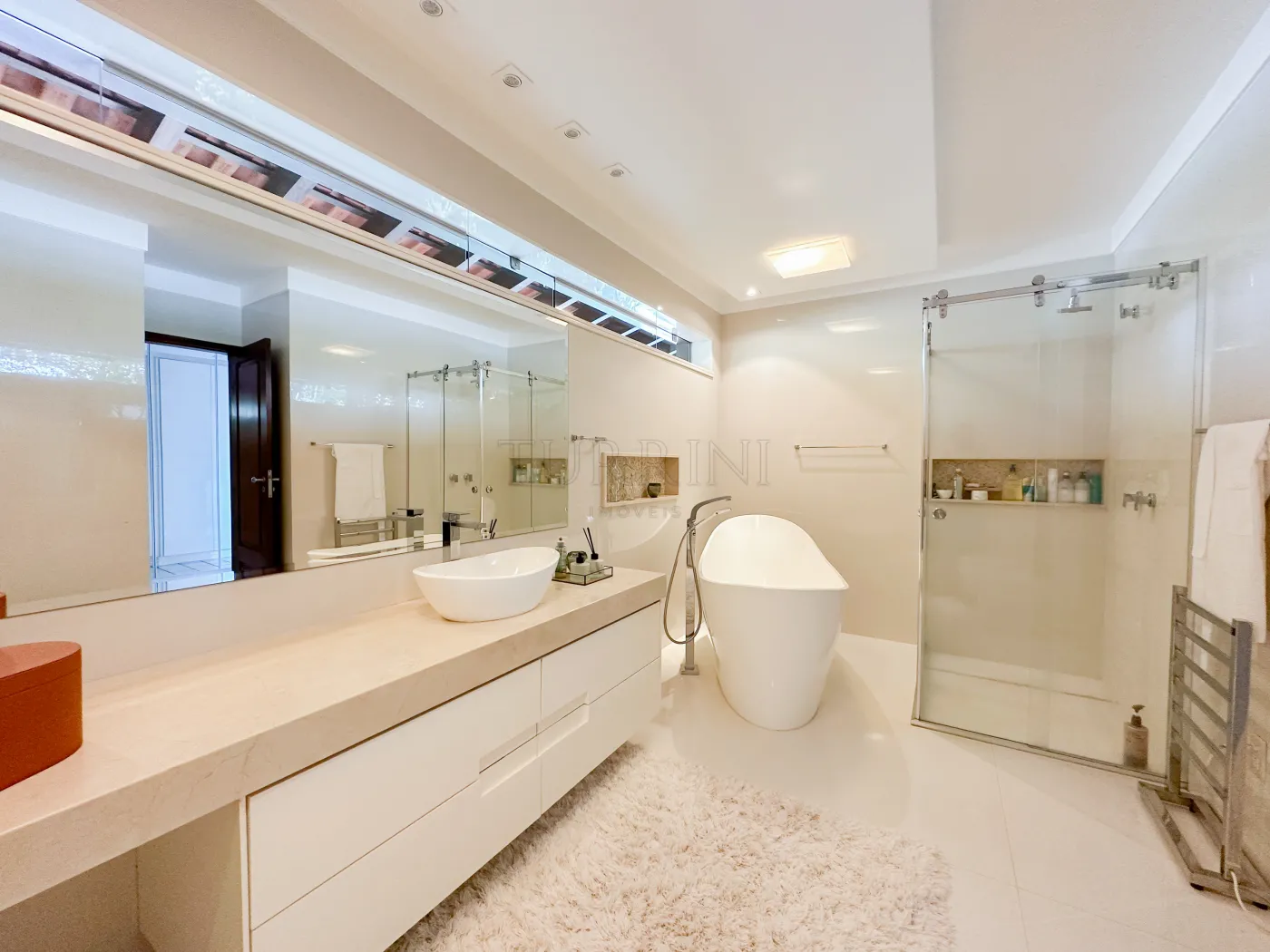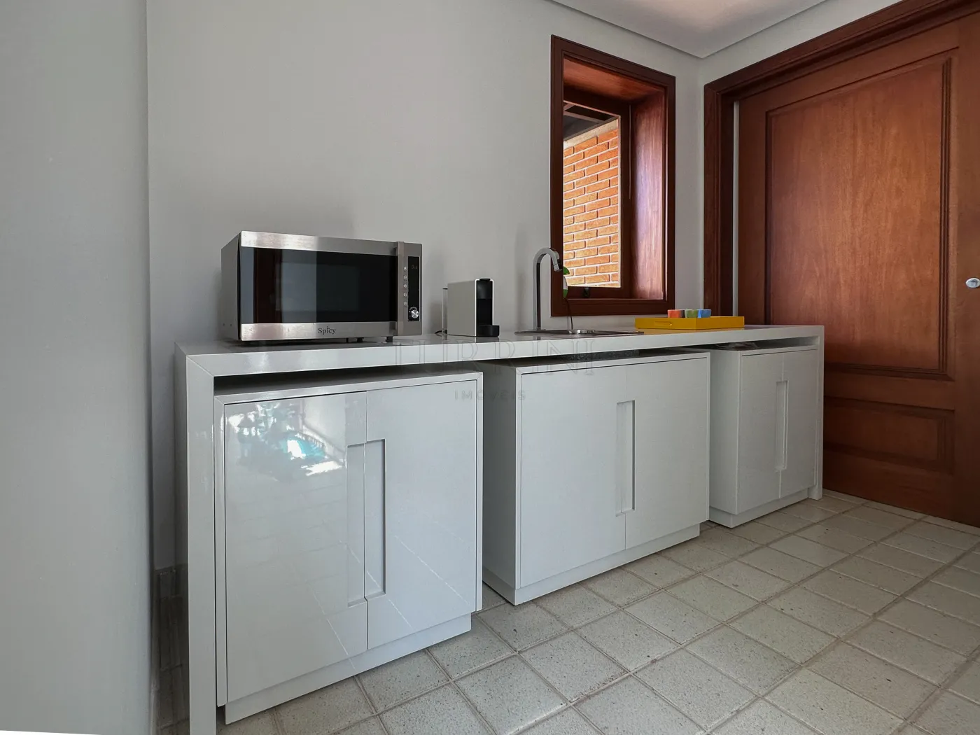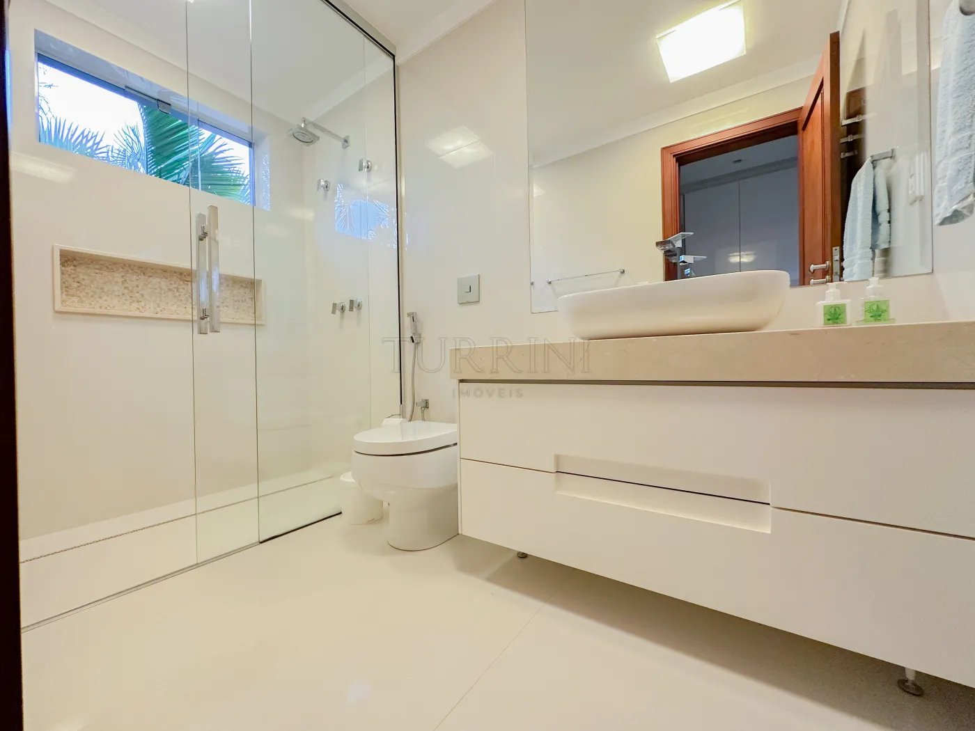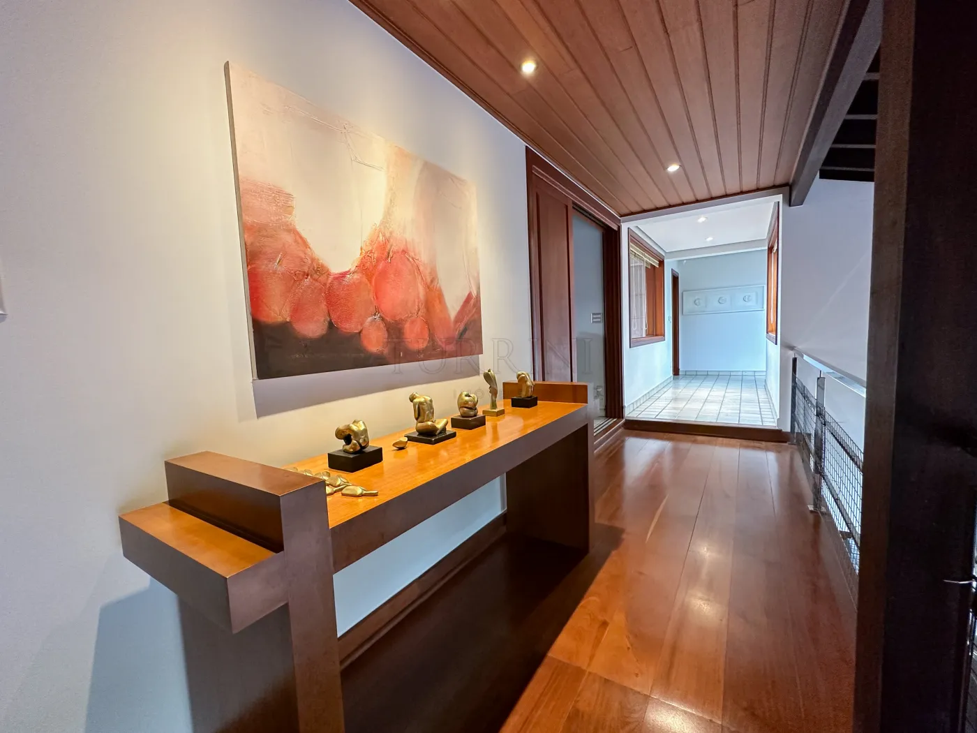 Na lateral da casa estão duas suítes para hóspedes, atendidas por uma copa, com acesso à sala de TV.