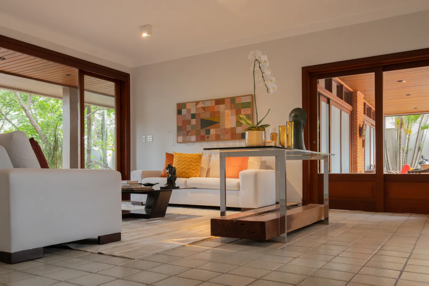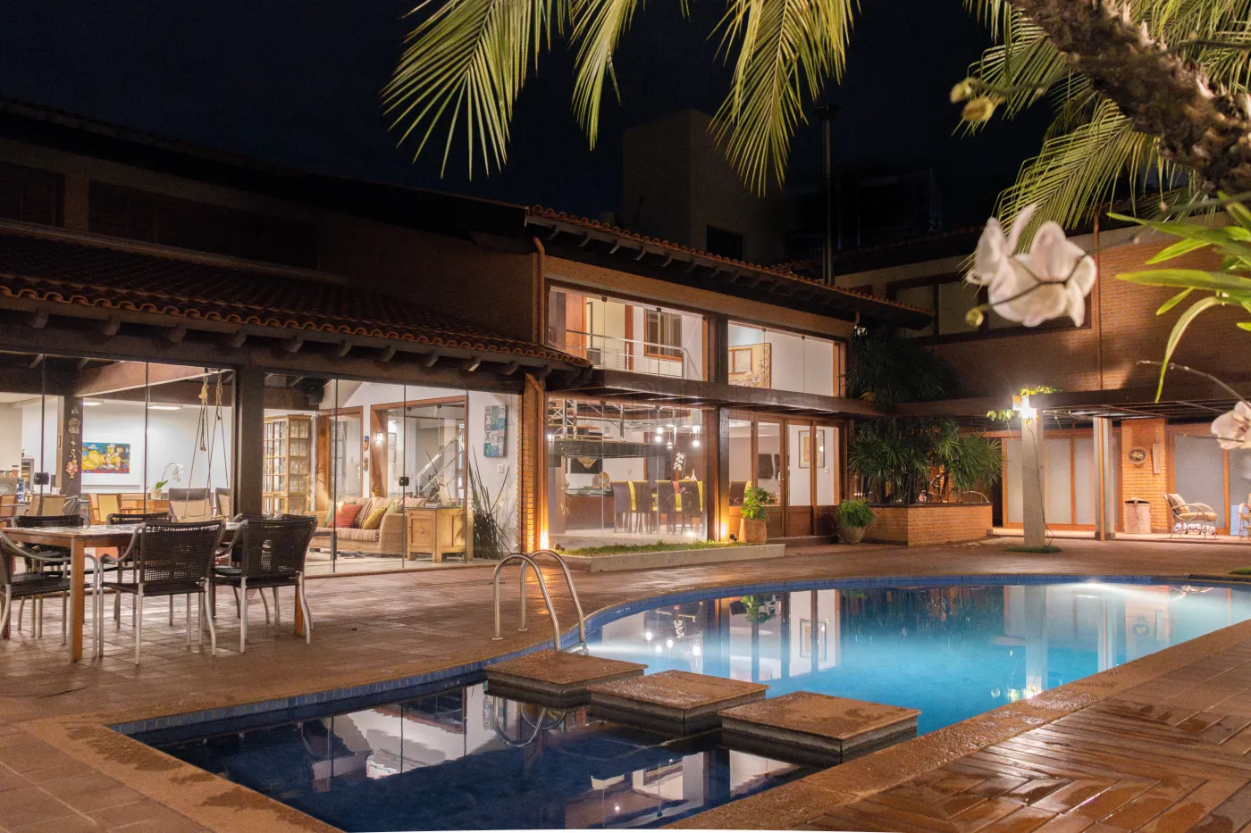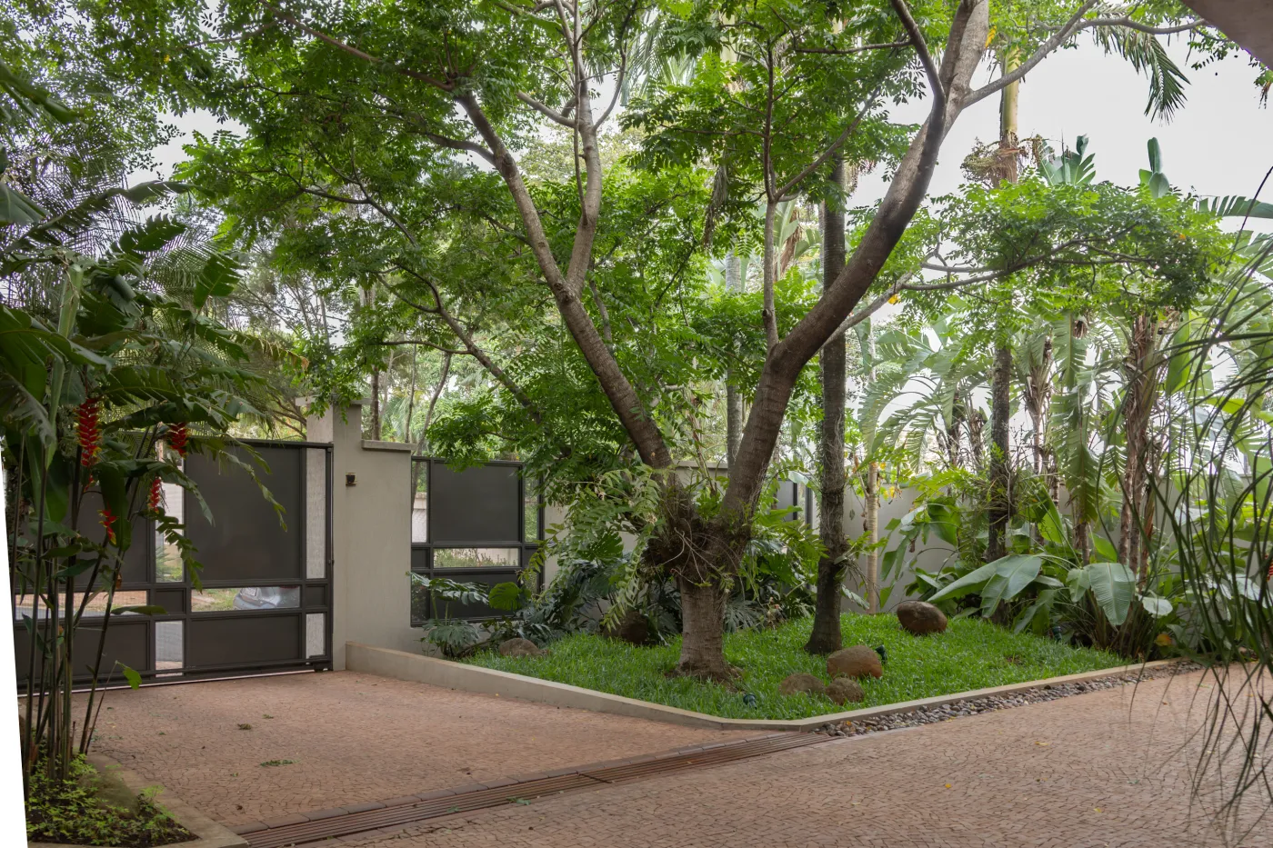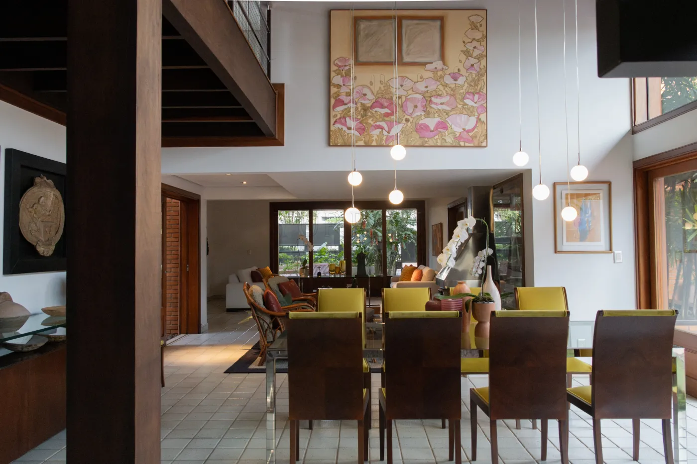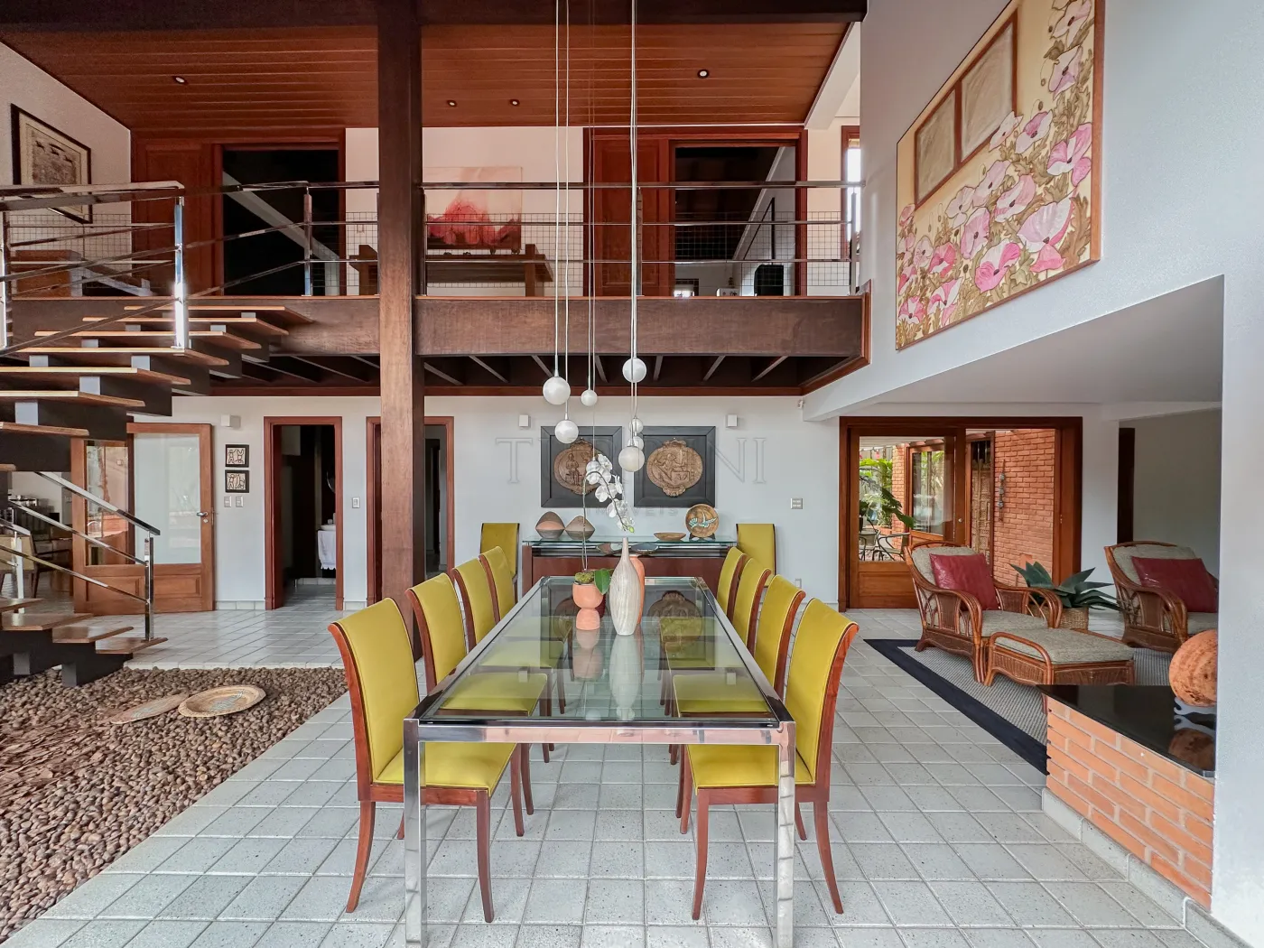 Estrutura leve, com grandes aberturas e superfície envidraçadas, emolduradas e sustentadas por madeiras nobres como jatobá e itaúba, reafirmam a essencialidade do projeto. Nada interrompe a sequência dos pisos artesanias do artista plástico Francisco Brennand, criando unidade e harmonia entre as áreas internas e externas.