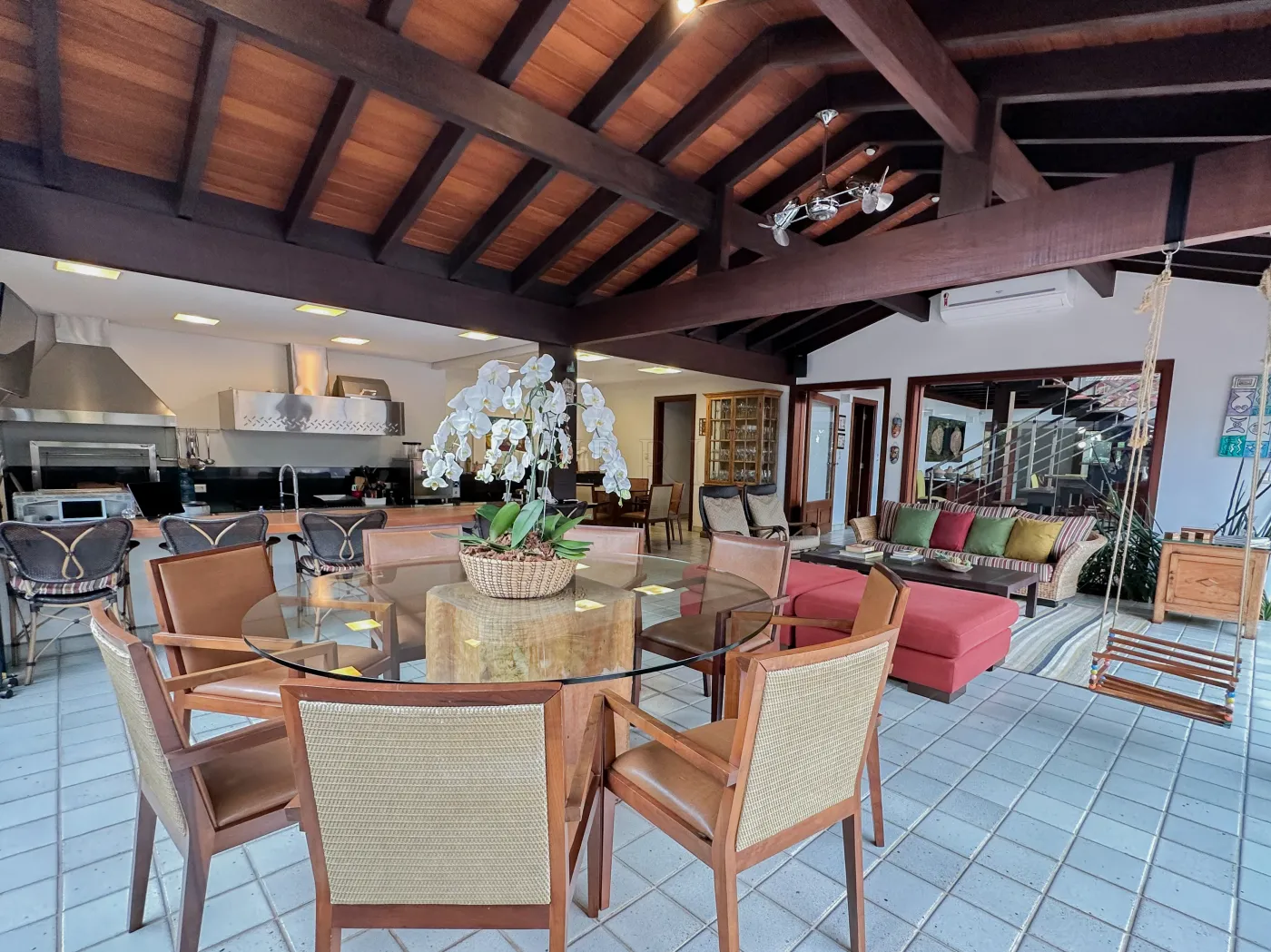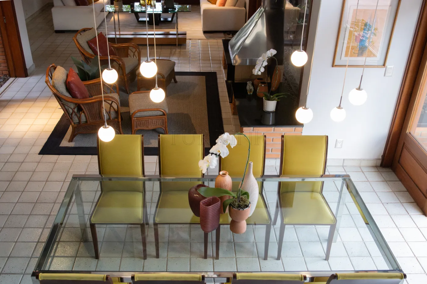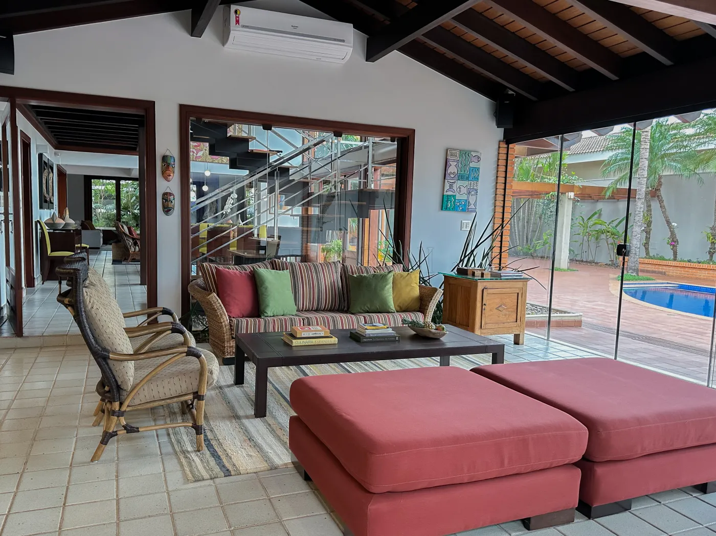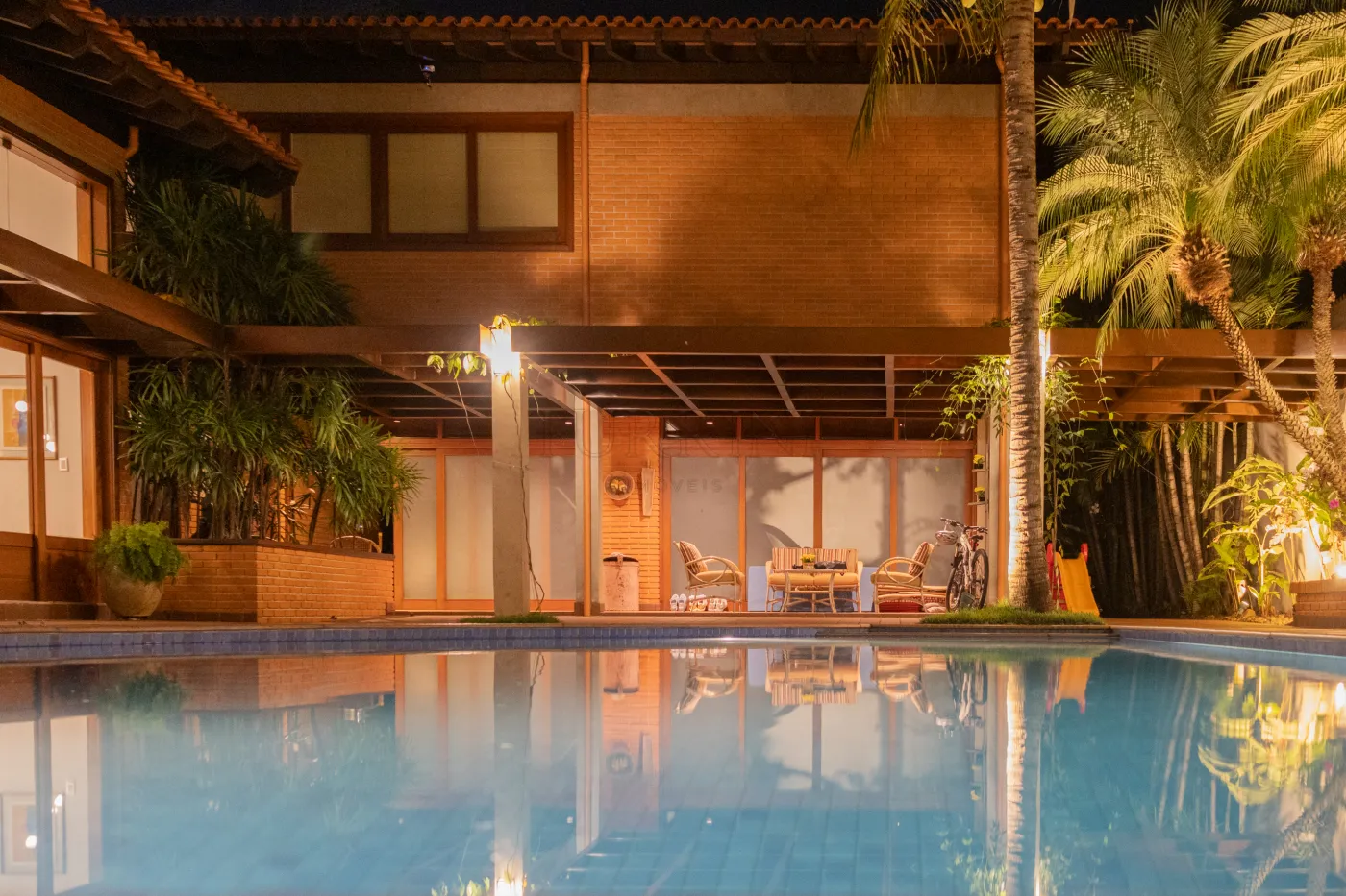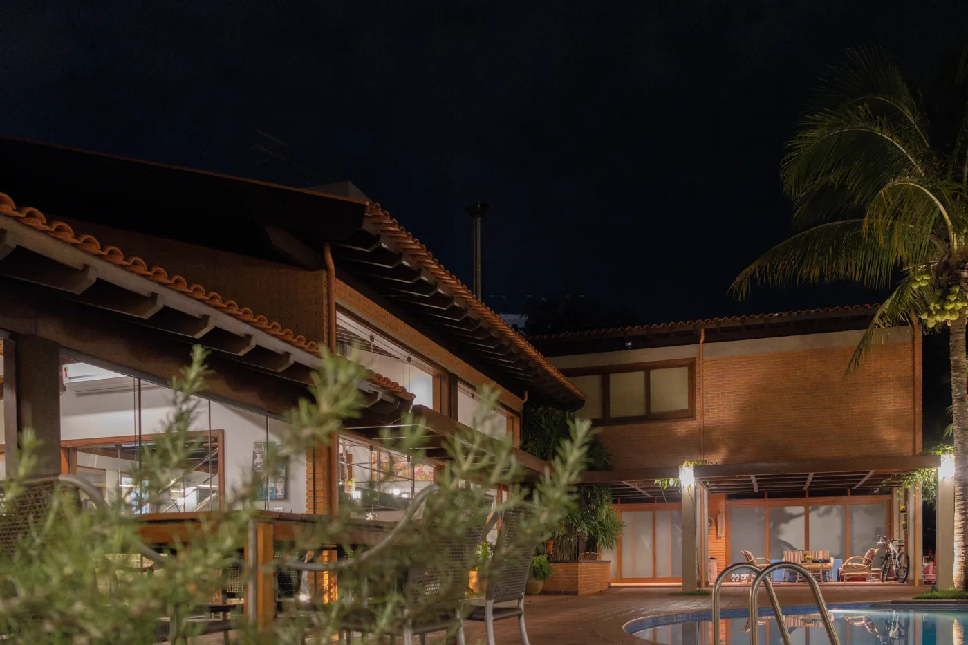 Estrutura leve, com grandes aberturas e superfície envidraçadas, emolduradas e sustentadas por madeiras nobres como jatobá e itaúba, reafirmam a essencialidade do projeto. Nada interrompe a sequência dos pisos artesanias do artista plástico Francisco Brennand, criando unidade e harmonia entre as áreas internas e externas.
