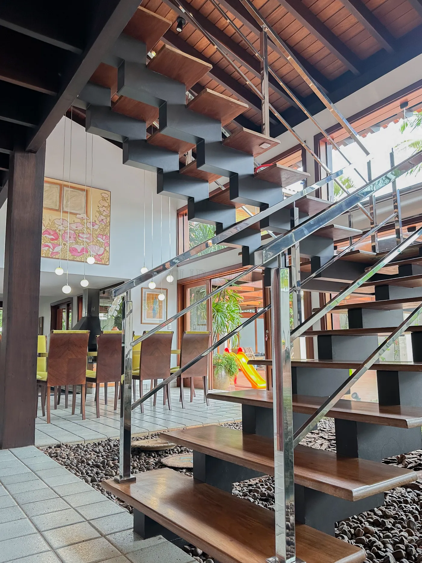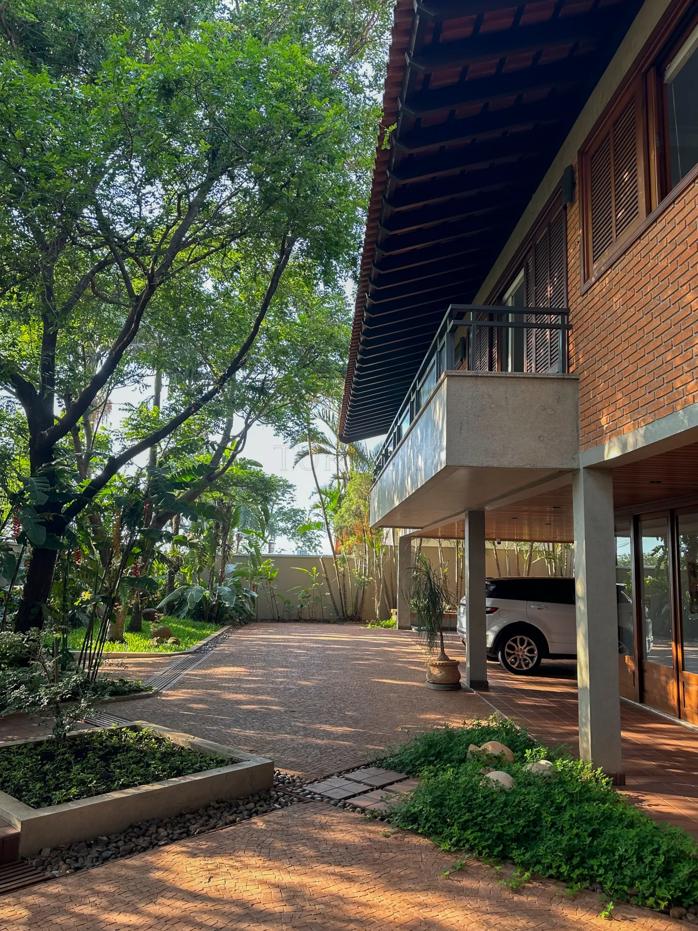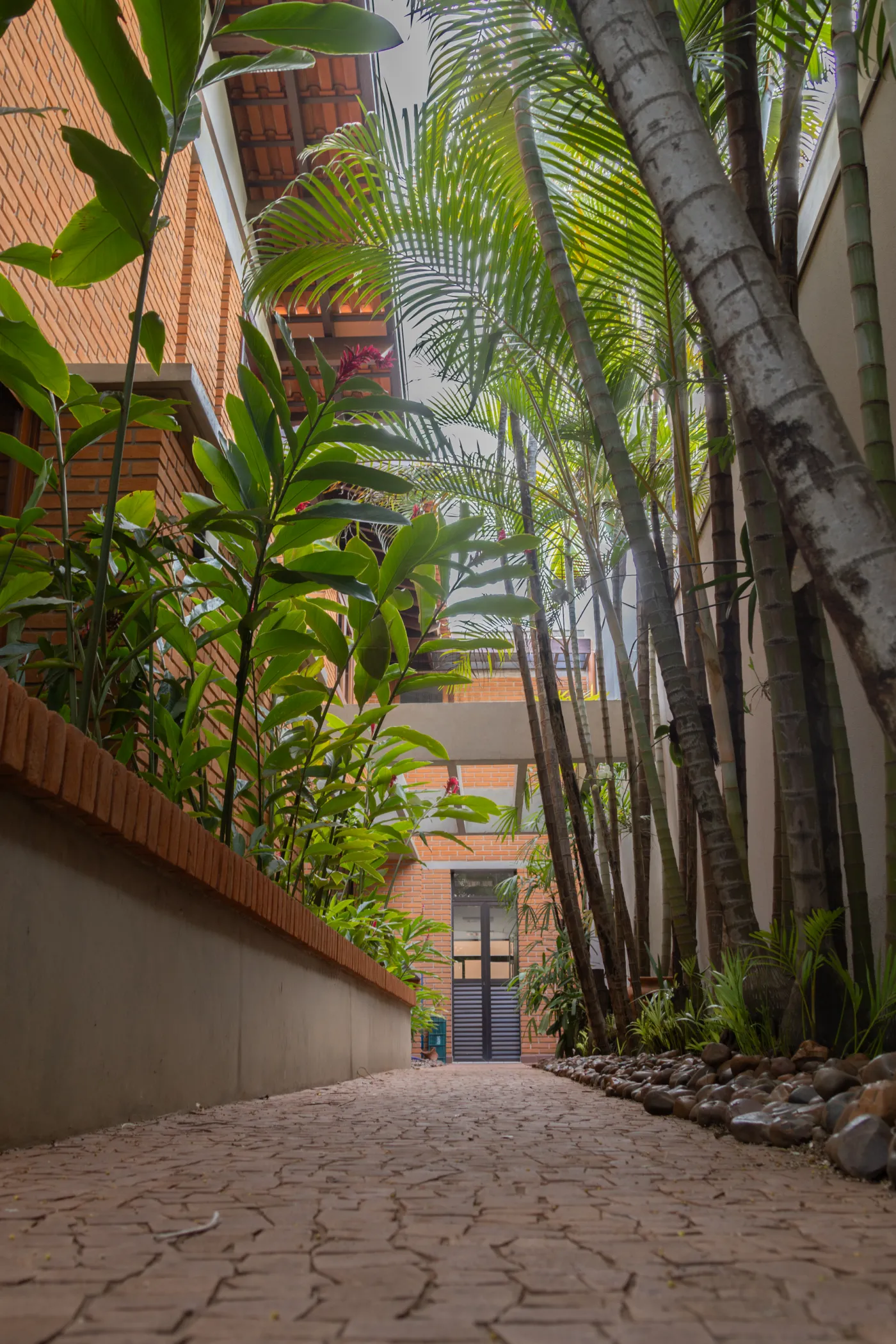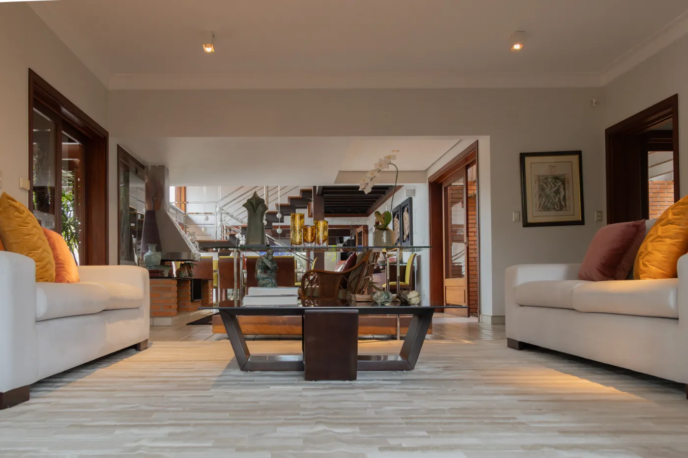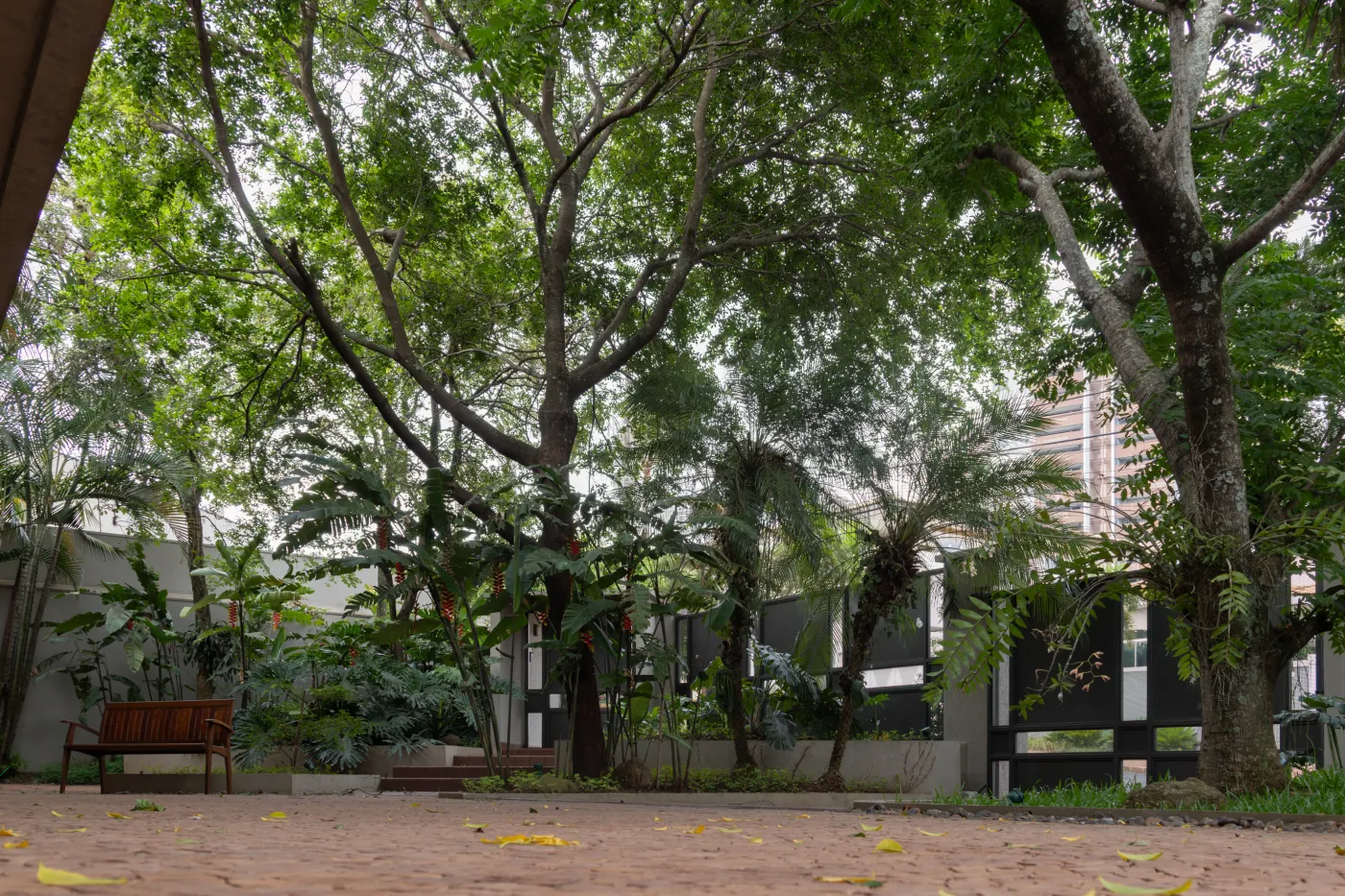 Estrutura leve, com grandes aberturas e superfície envidraçadas, emolduradas e sustentadas por madeiras nobres como jatobá e itaúba, reafirmam a essencialidade do projeto. Nada interrompe a sequência dos pisos artesanias do artista plástico Francisco Brennand, criando unidade e harmonia entre as áreas internas e externas.
