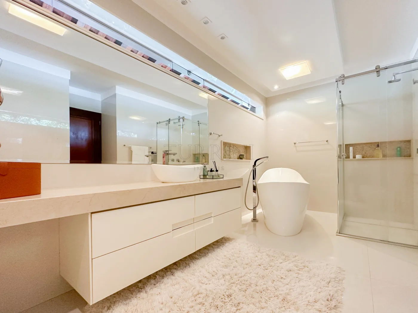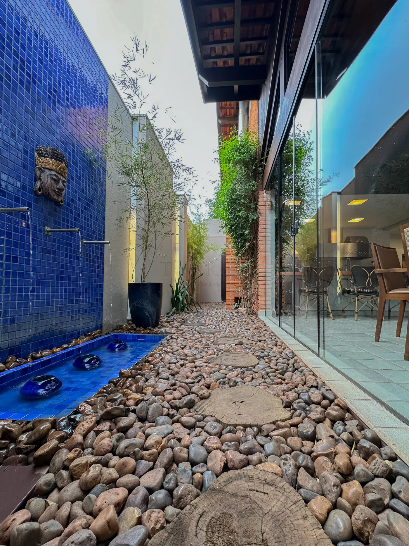 Com uma linguagem contemporânea, a residência de 850m², está implantada num terreno de 1.000m², no Condomínio Residencial Samambaia, na cidade de Bauru. Os ambientes, por sua vez, foram distribuídos de tal forma que todos oferecem vista para a piscina ou jardim arborizado, com farta incidência de luz natural. ??Do ponto de vista arquitetônico, especial atenção foi dispensada ao desenho da área de convívio social, com amplas salas de estar, de almoço, de jantar, de lareira, totalmente abertas. A área gourmet envidraçada, conta com duas cozinhas, dotadas de equipamentos profissionais.