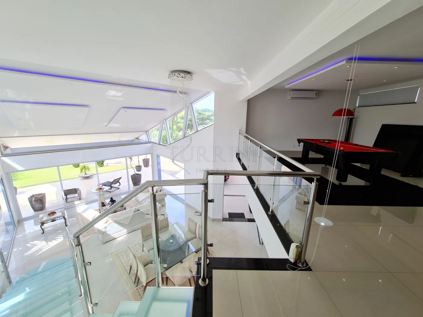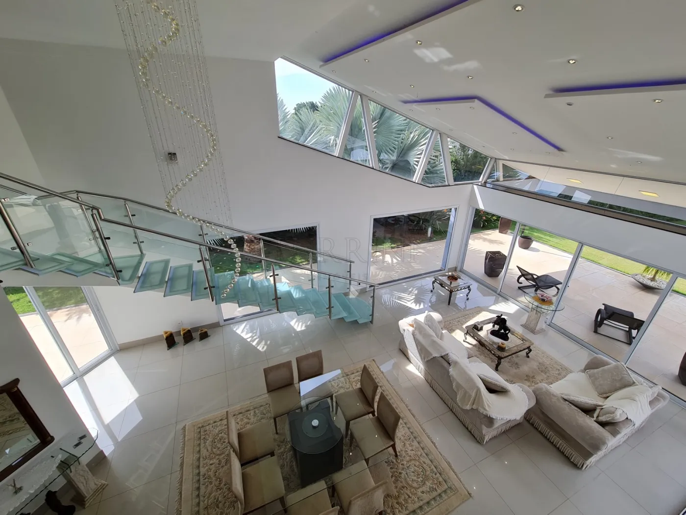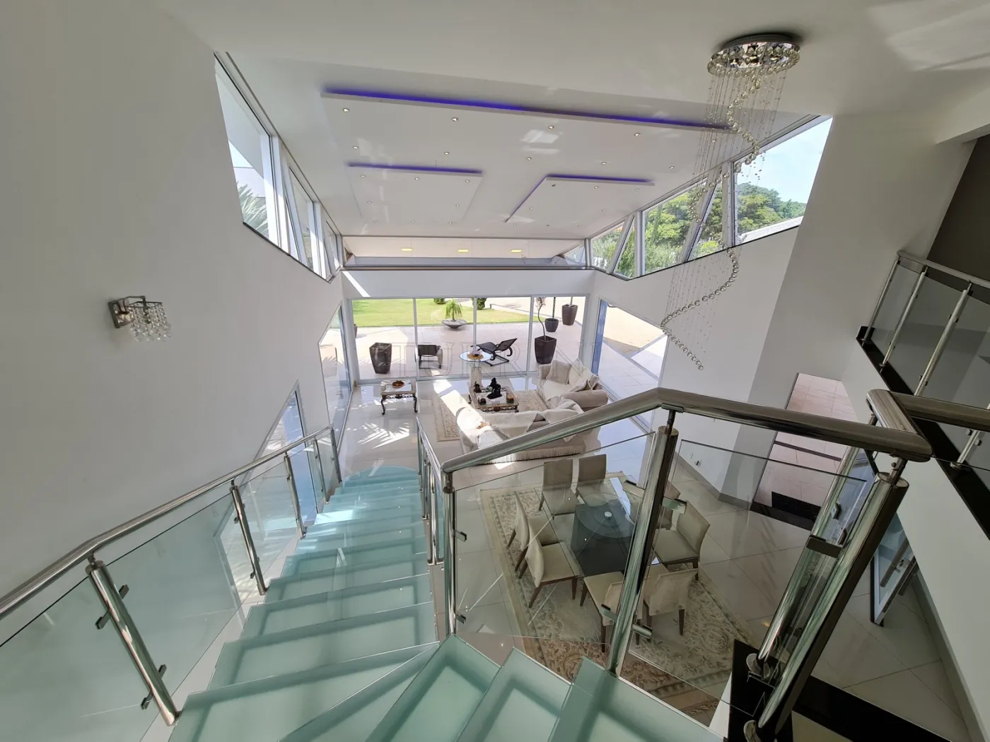 ESCADA DA SALA PARA O MEZANINO EM VIDRO E LED