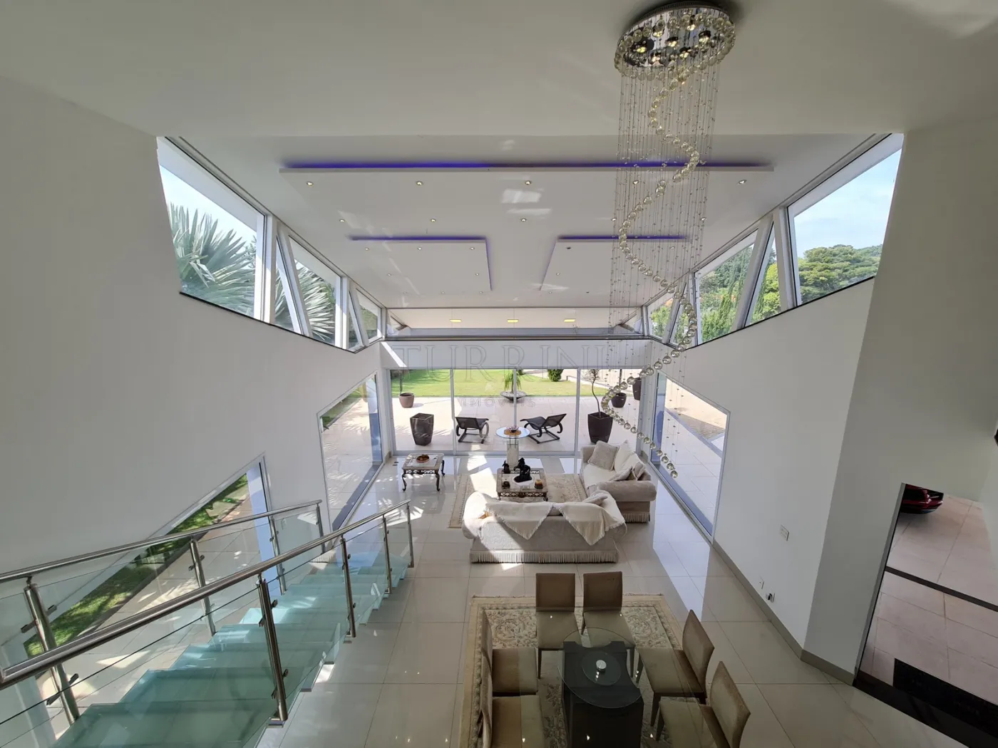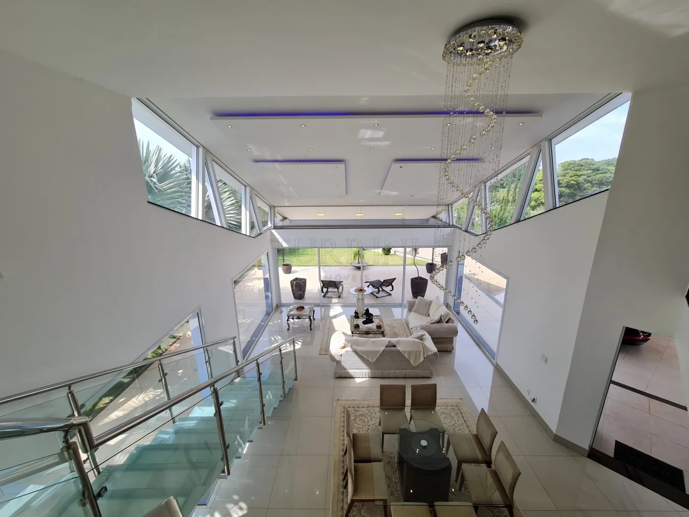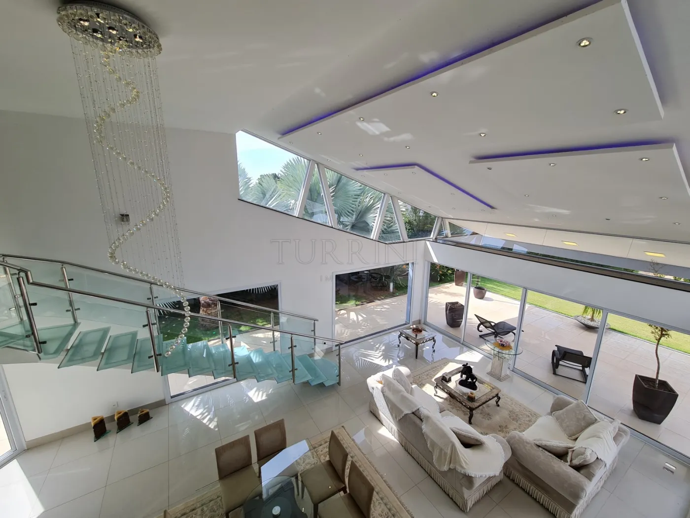 ESCADA DA SALA PARA O MEZANINO EM VIDRO E LED