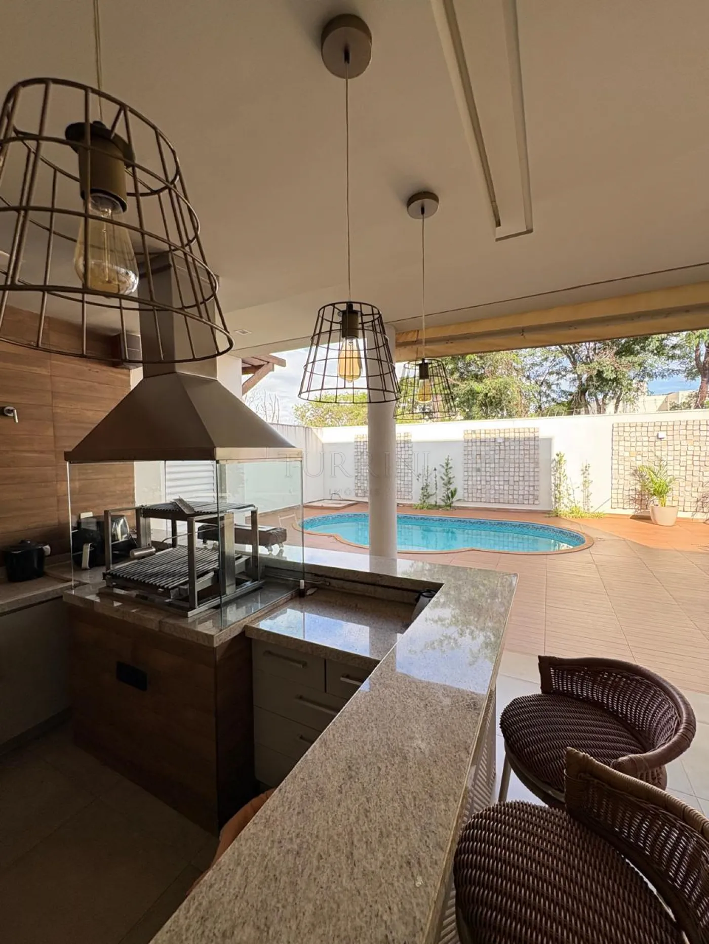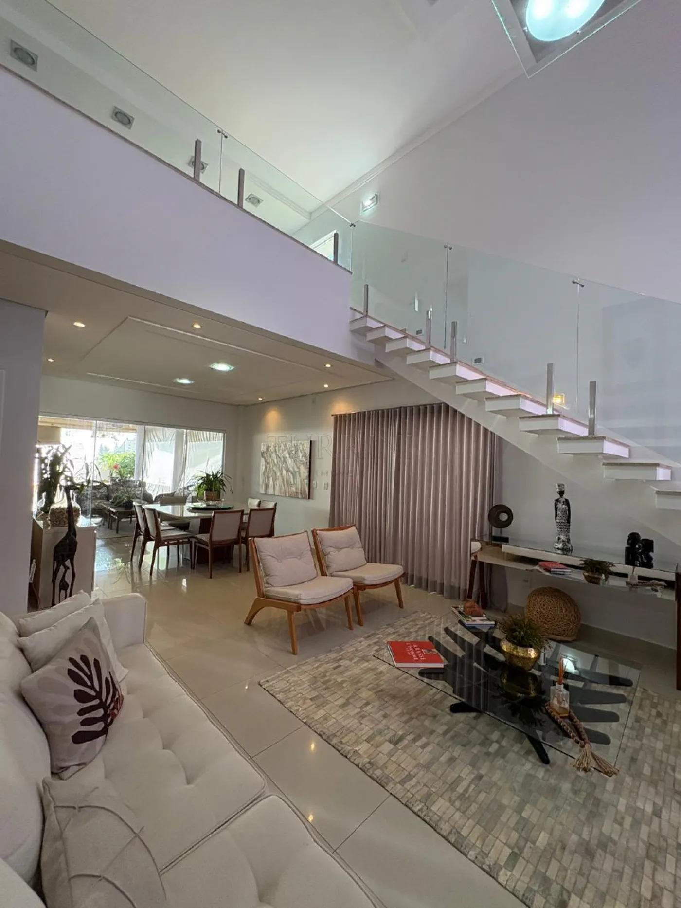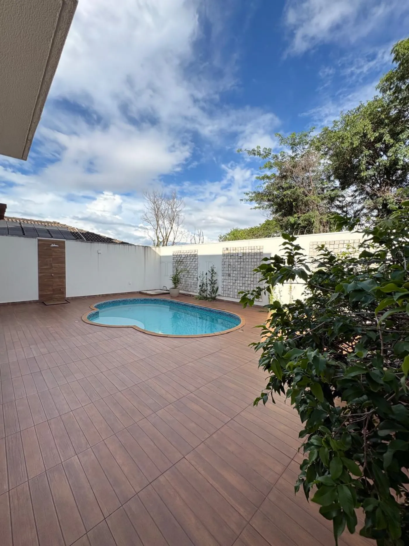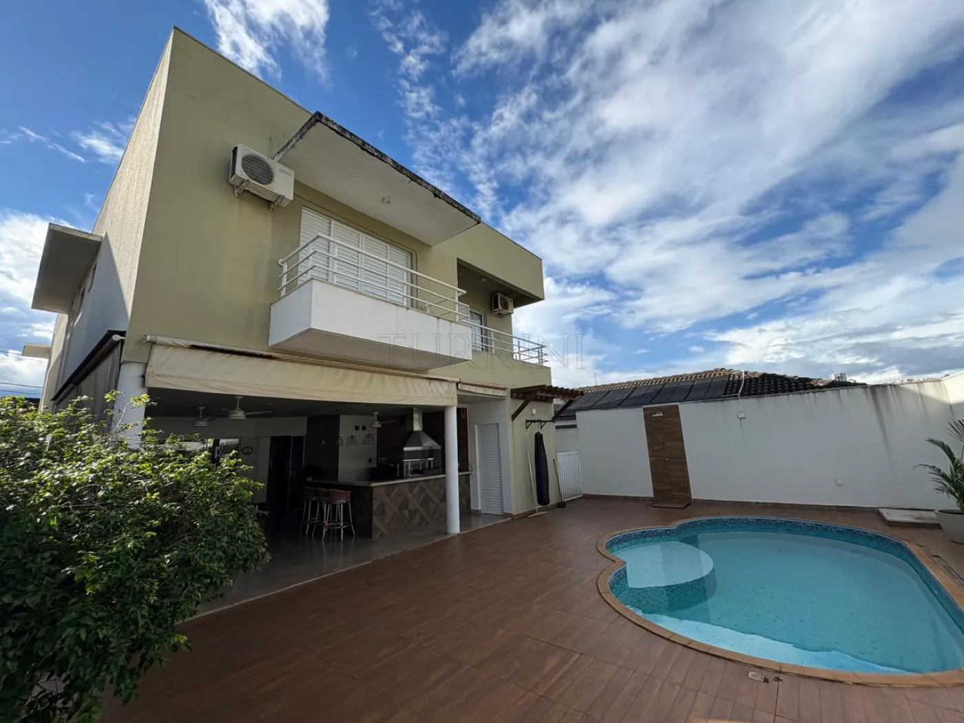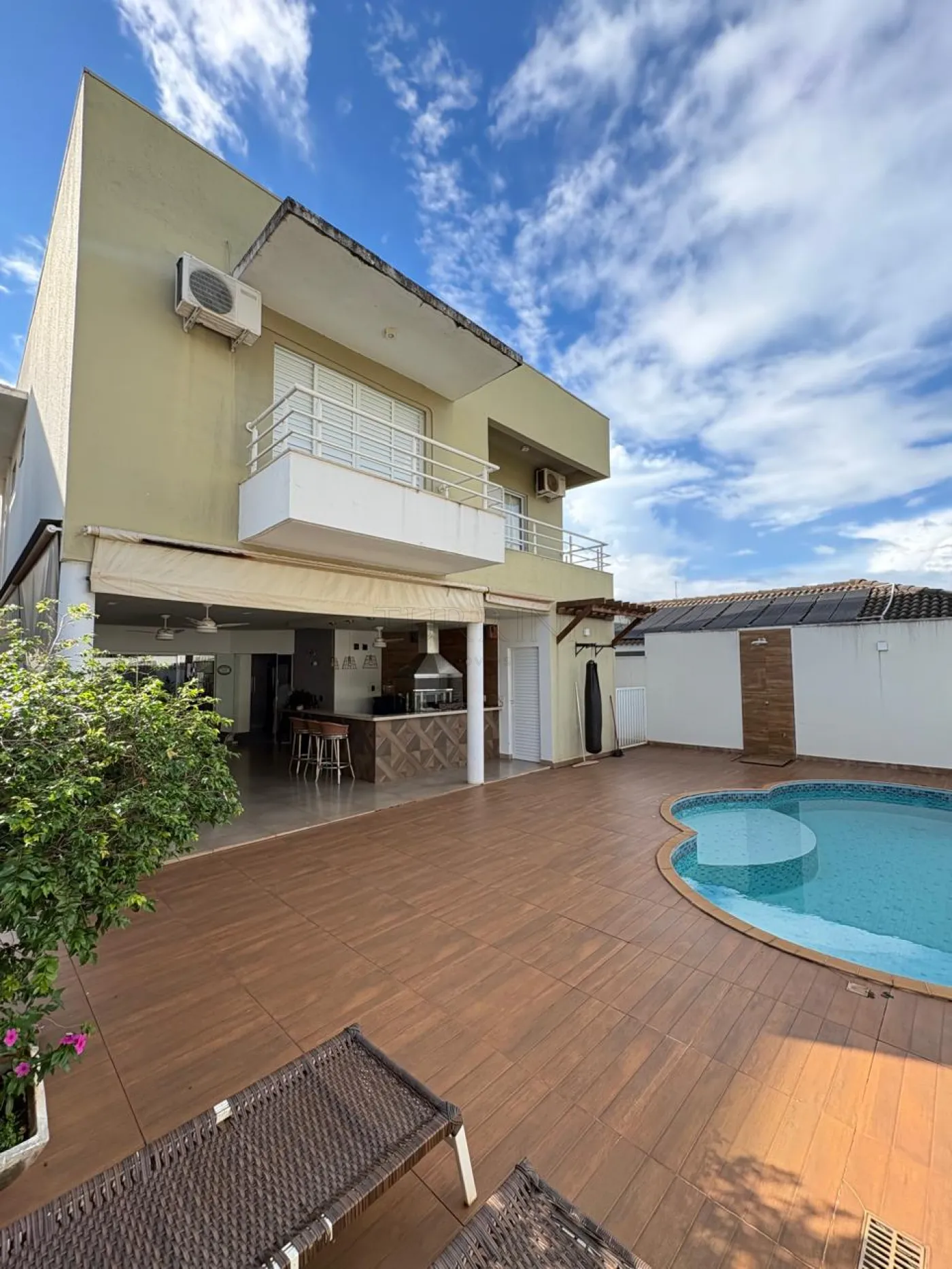 Sobrado com 04 suítes sendo uma master, living, lavabo, sala de home, cozinha planejada com despensa, espaço gourmet com piscina, área de serviço e garagem para dois carros.