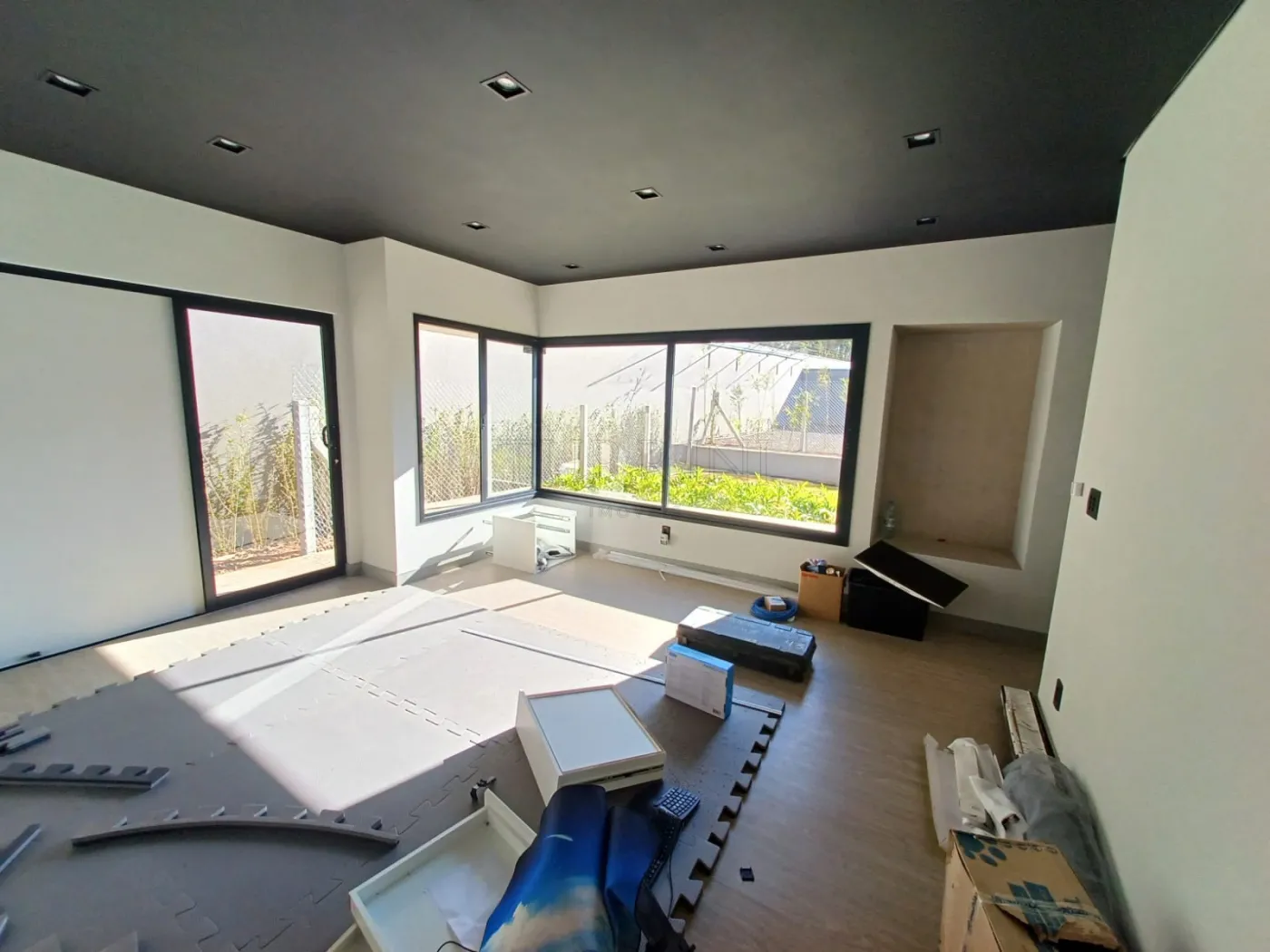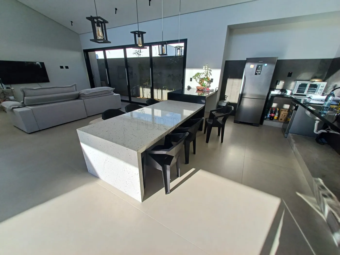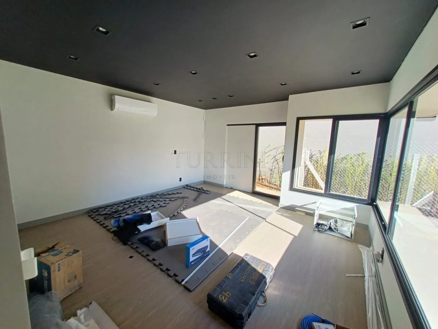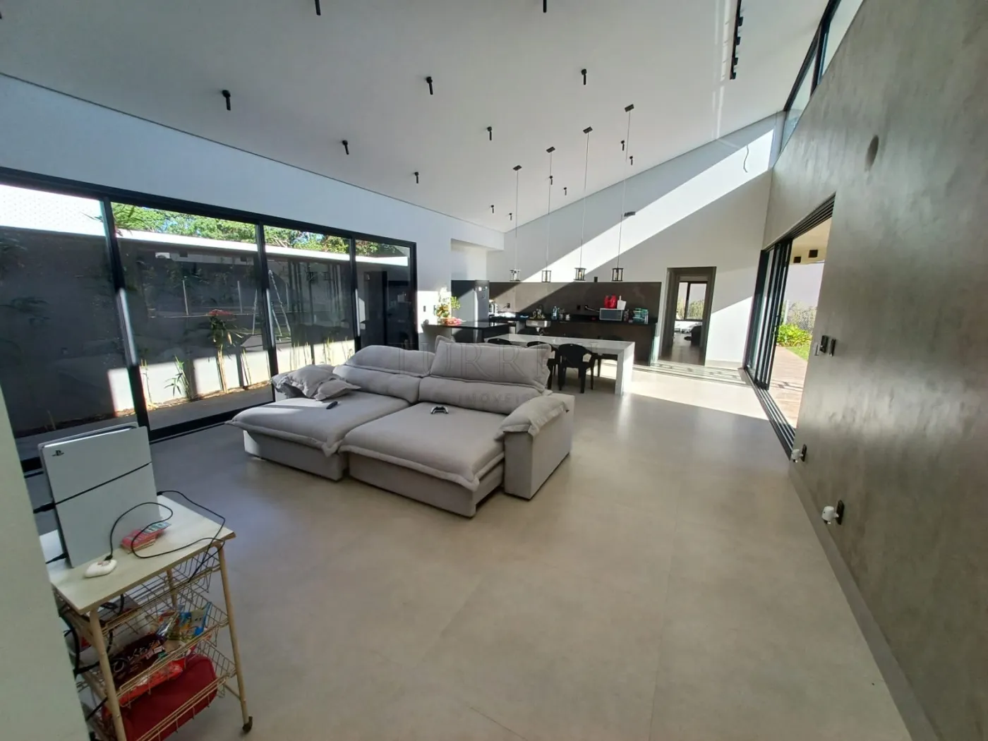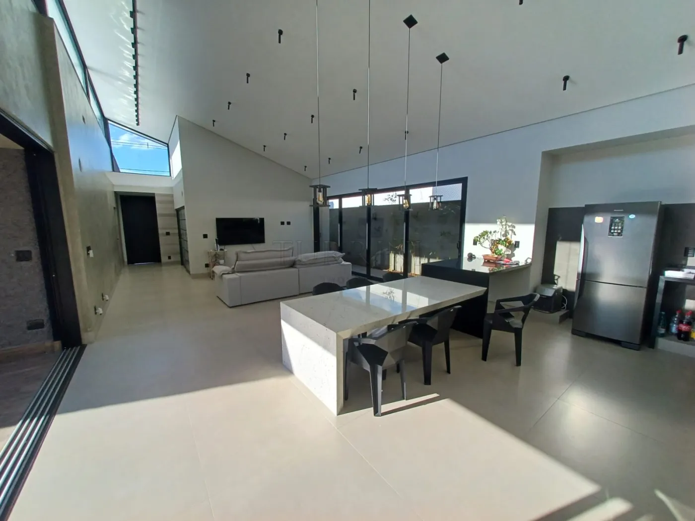 Sala ampla, pé direito alto, para três ambientes
