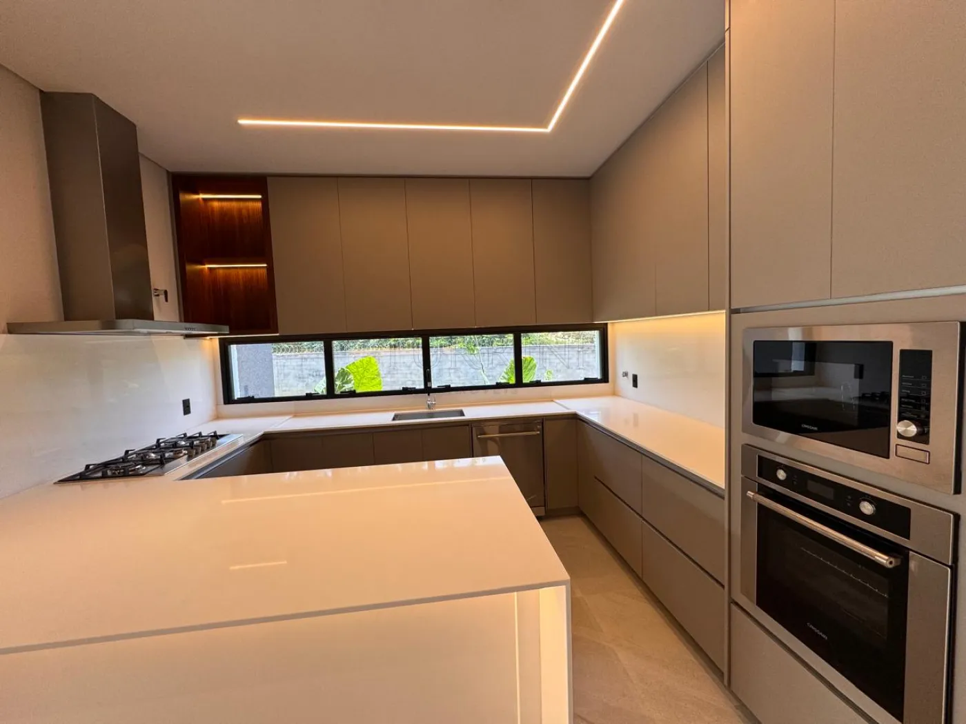 Cozinha separada muito Rica em Armários e Bancada quartzo Branco.