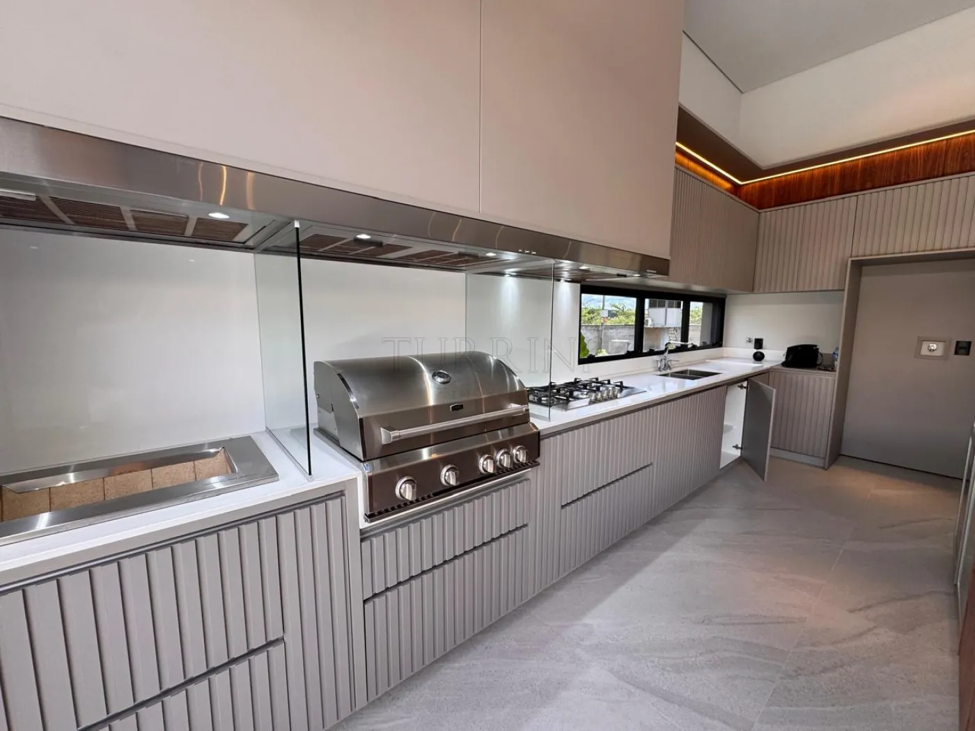 Ampla área Goumert toda equipada com Cervejeira e Adega Evol, Churrasqueira à gás marca Evol e churrasqueira a Carvão