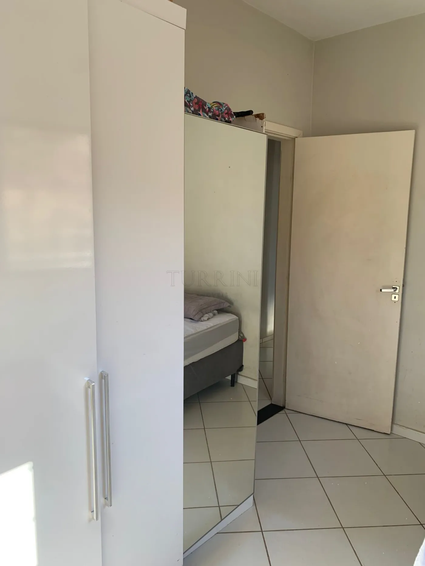 Guarda-roupa planejado em uma das suítes e ar condicionado