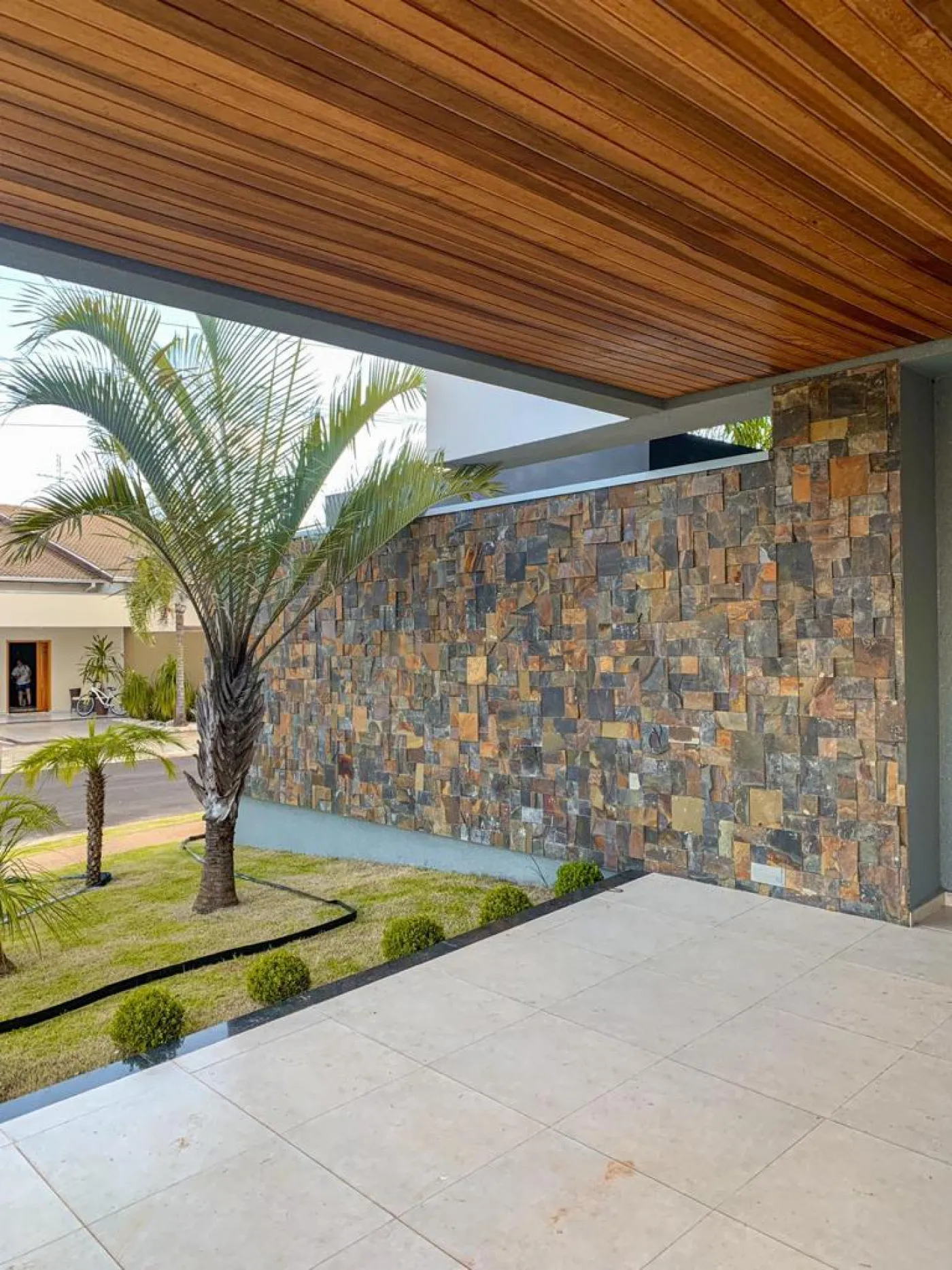 Forro decorativo em cedrinho-vermelho (garagem e varanda gourmet).