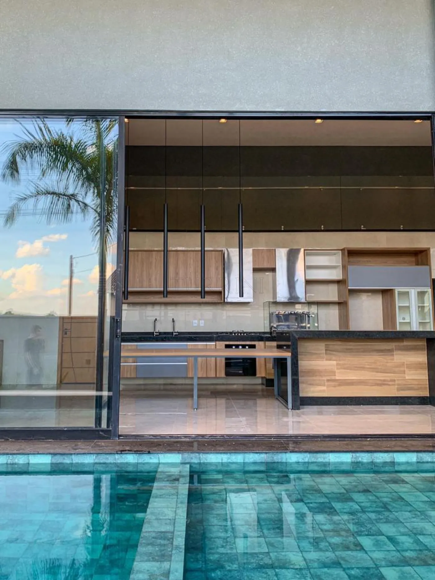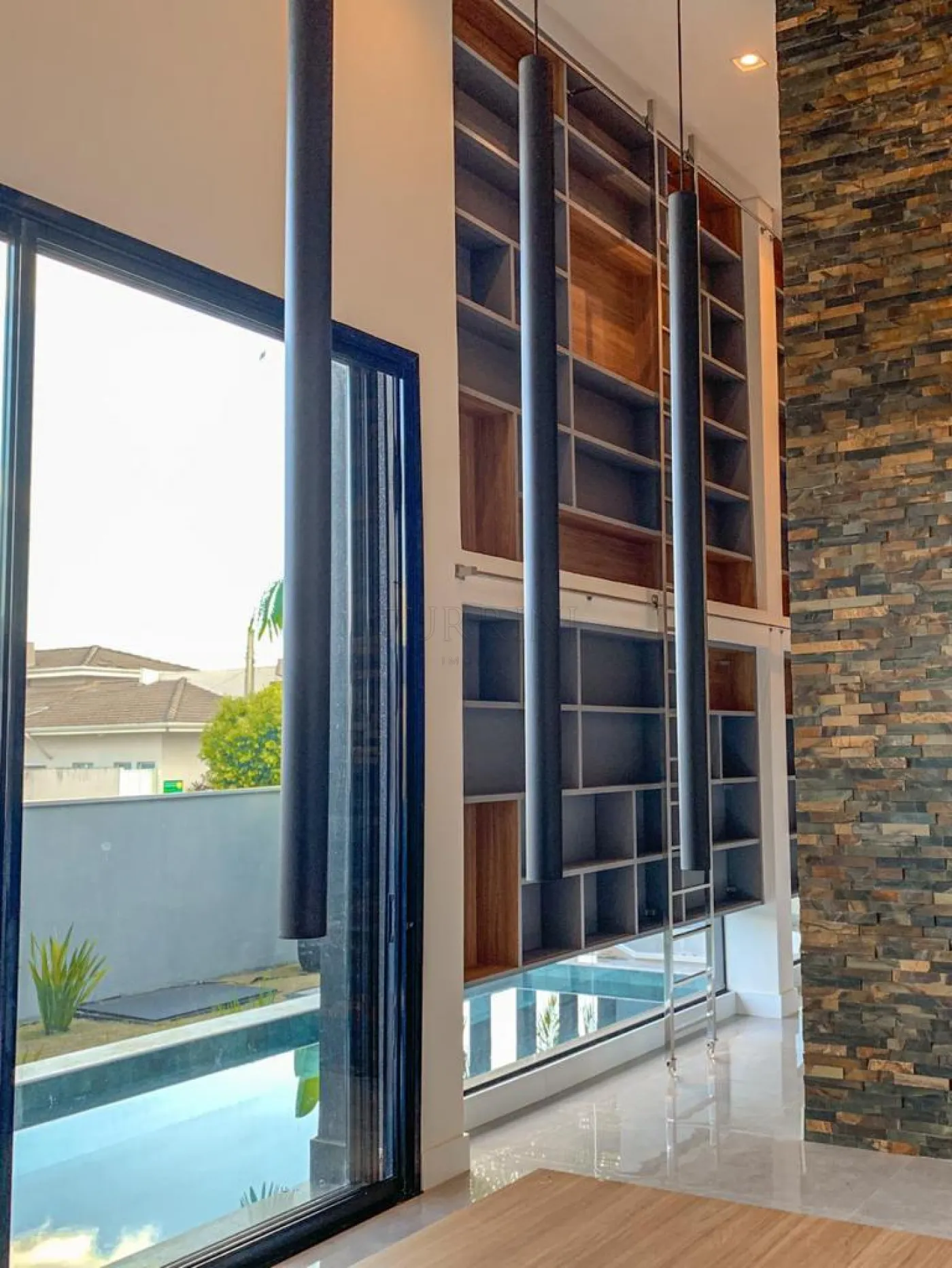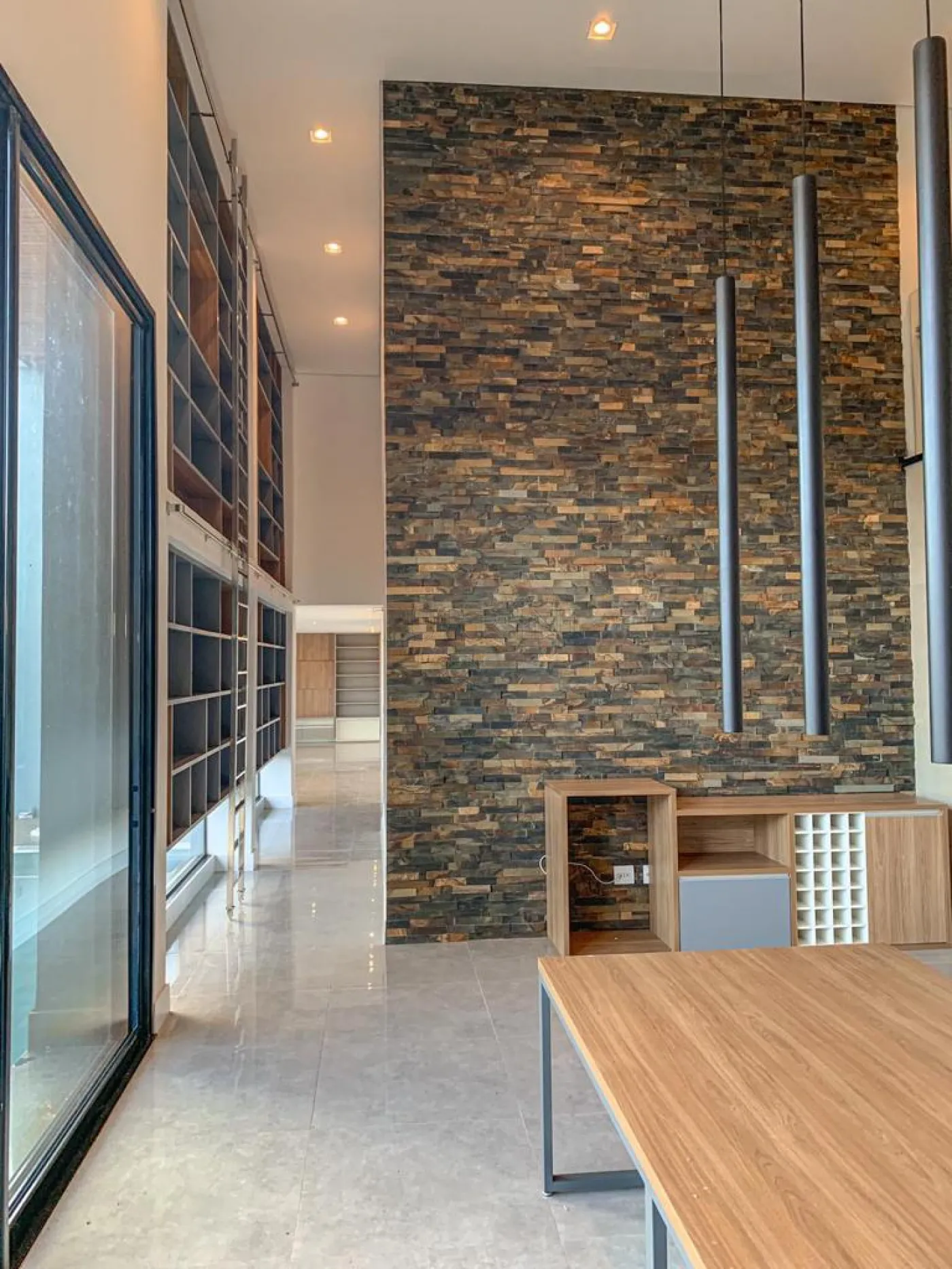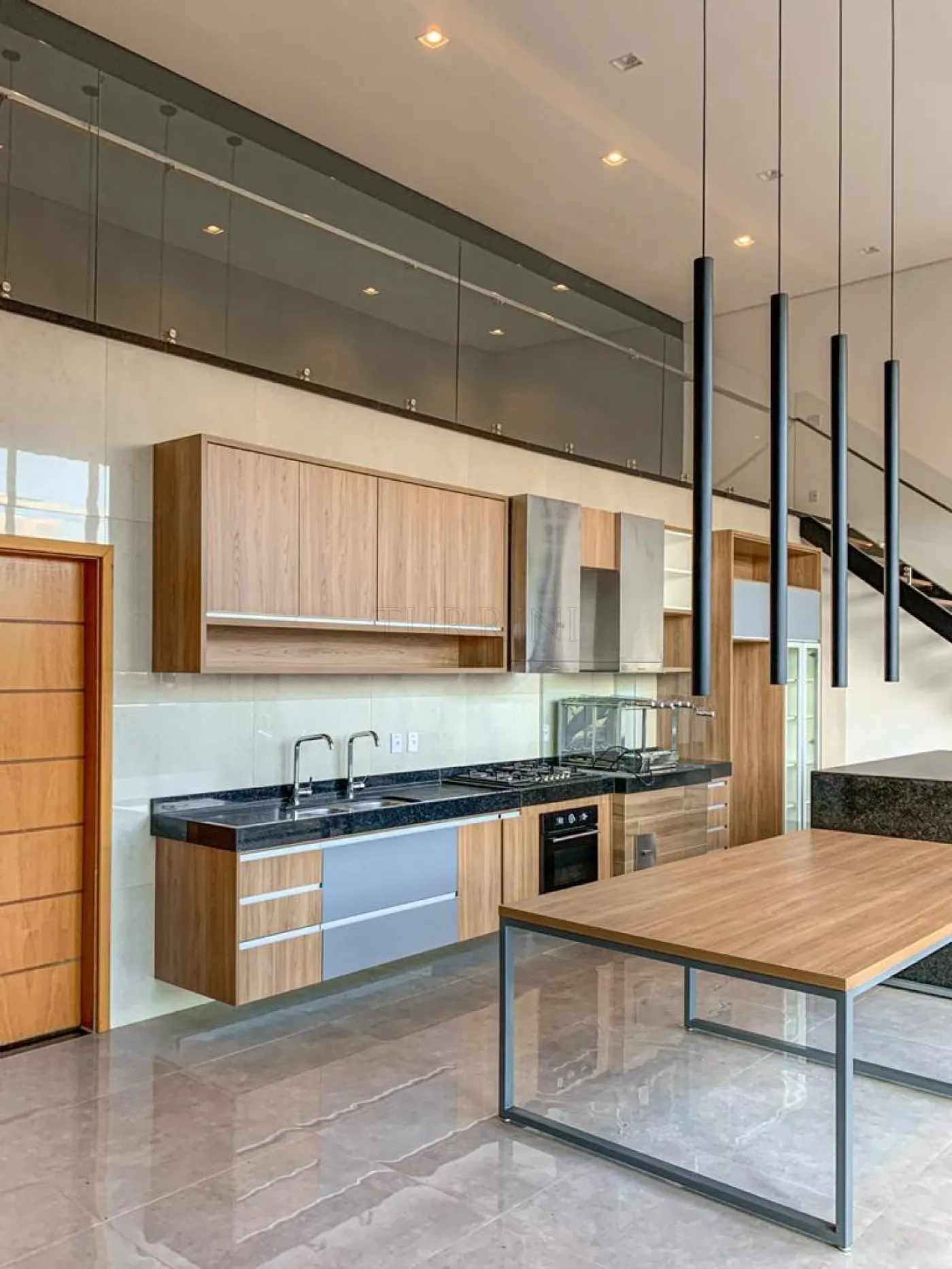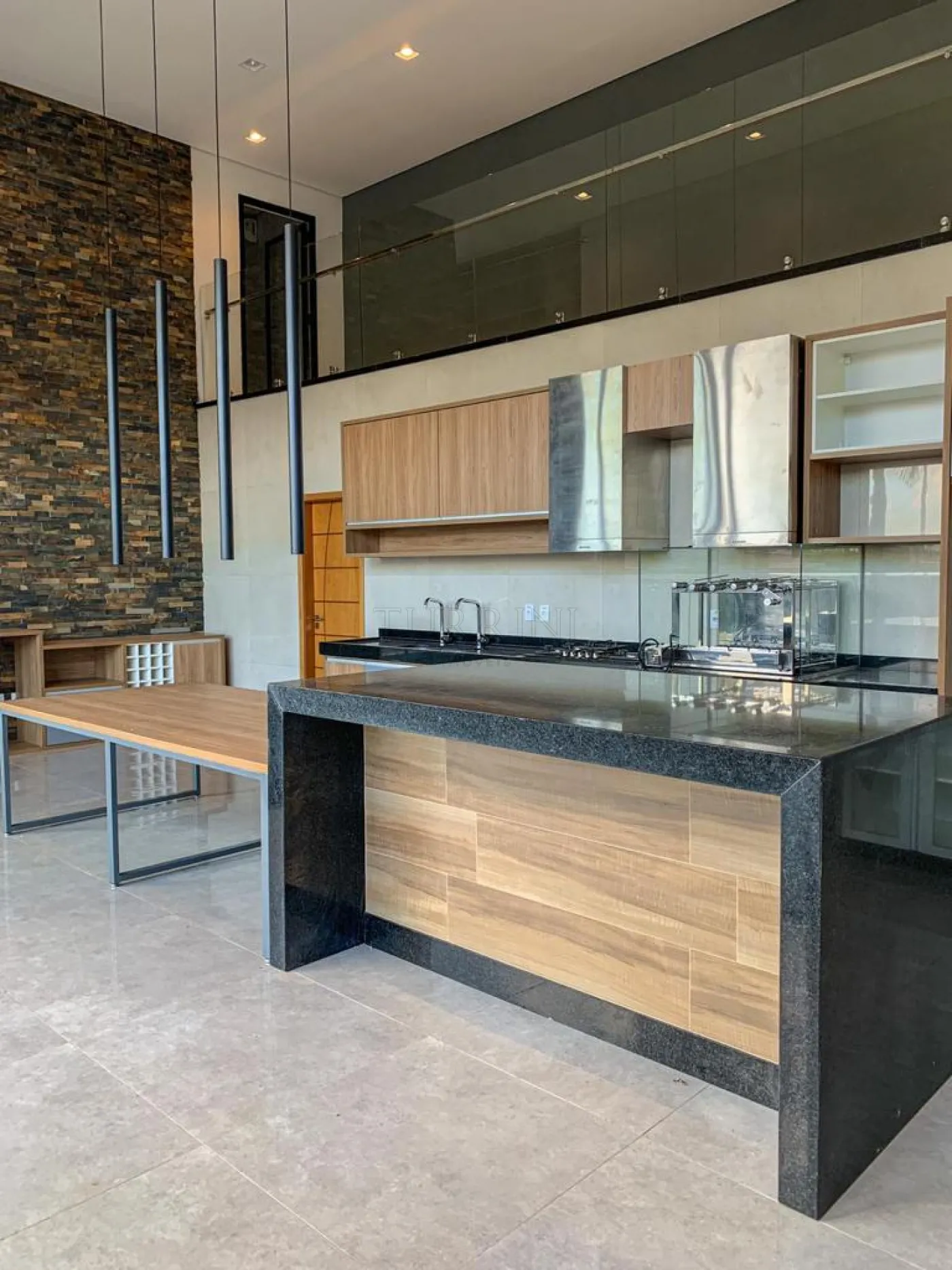 Área gourmet com pé-direito alto.