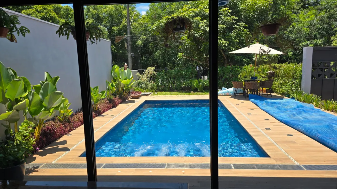 * Piscina aquecida controlada por aplicativo (trocador de calor EKO 9 - não depende de sol para manter a piscina aquecida)